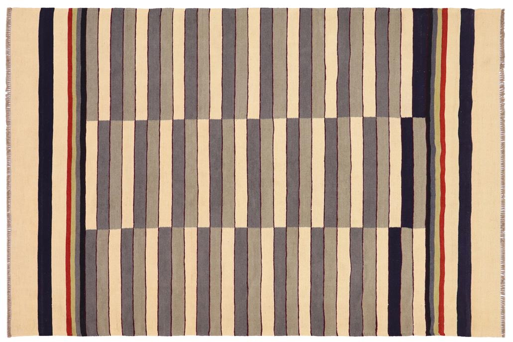 Elevate the elegance of your home with this stunning hand-woven tribal Kilim wool rug. Meticulously crafted on a loom by the Nomad Turkman people using hand-spun wool and 100% natural vegetable dyes, these rugs are recognized for their repetitive geometric patterns, incorporating naturalistic floral and traditional designs. The contemporary fashion palette results in bold, sharp patterns that are incredibly versatile, as the pattern is the same on both sides. These reversible rugs feature a lighter shade on one side and brighter colors on the other, providing versatility according to preference. These unique rugs are made by knotting short strands of different colors onto the warps and securing them by tightly pressing the wefts. The designs are created by interweaving the various colored wefts and warps. Kilims are known for their exceptional durability and versatility, making them truly unique rugs.