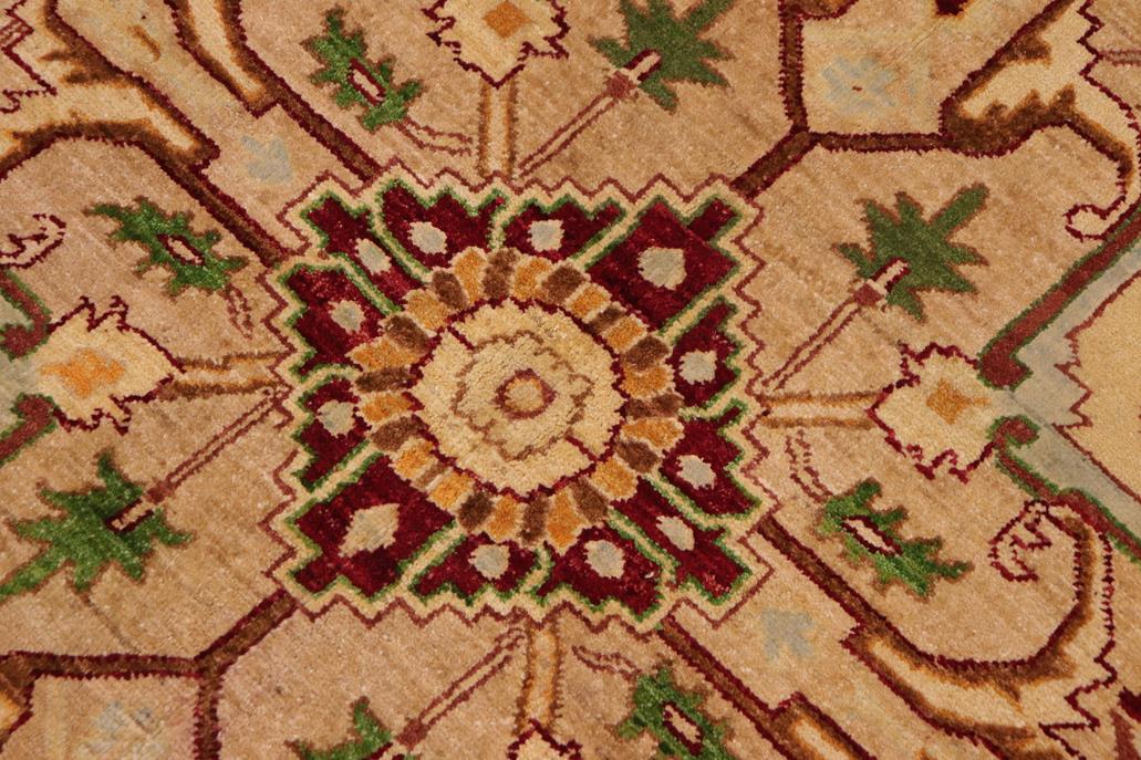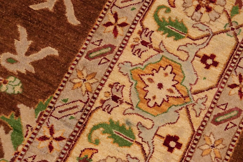 Enhance the ambiance of your home with this magnificent Persian-influenced Turkish hand-knotted rug made by skilled artisans capable of creating the most exceptional vegetable dyes and hand-spun wool. This exquisite handmade rug is a one-of-a-kind Peshawar Kafkaz, otherwise identified as Chobi, Chobi Peshawar, Oushak, or Ziegler rug. These handmade rugs are crafted in Pakistan utilizing superior-quality wool imported from Australia, New Zealand, and Korea in two types of weaves: the Persian weave and the Mori weave. This rug is meticulously crafted by hand using the finest natural vegetable dyes extracted from local plants. The artisans use a blend of hand-spun local and fine merino wool, resulting in a rug with a compelling texture, higher lanolin content, and longer staple. The artisans occasionally incorporate natural or artificial silk into the pile to enhance specific motifs. The finished product is an awe-inspiring flawless design execution and an understated palette that exudes elegance. Contemporary Peshawar rugs draw inspiration from antique Persian designs and feature modern design motifs with vibrant color tones. Hand-knotted with all-natural dyes, resulting in a unique abrash effect and subtle color variations in the pile. Peshawar rugs are known for their stunning and vibrant colors, which were achieved through a process inspired by antique methods. The rug's pile is meticulously trimmed to a moderate thickness and then stone-washed and sun-dried, resulting in a natural sheen and pleasing color tones. Transform the ambiance of your room into a luxurious haven with this gorgeous rug featuring a beautiful color palette. This stunning rug features an intricate oriental design that showcases royalty and seamlessly complements any decor. Its hand-knotted construction and natural fibers provide a soft and comfortable feel underfoot, making it the perfect addition to any room.