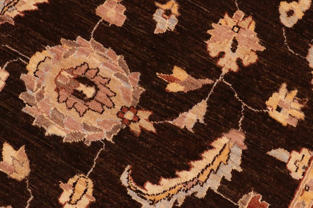 Enhance the ambiance of your home with this magnificent Persian-influenced Turkish hand-knotted rug made by skilled artisans capable of creating the most exceptional vegetable dyes and hand-spun wool. This exquisite handmade rug is a one-of-a-kind Peshawar Kafkaz, otherwise identified as Chobi, Chobi Peshawar, Oushak, or Ziegler rug. These handmade rugs are crafted in Pakistan utilizing superior-quality wool imported from Australia, New Zealand, and Korea in two types of weaves: the Persian weave and the Mori weave. This rug is meticulously crafted by hand using the finest natural vegetable dyes extracted from local plants. The artisans use a blend of hand-spun local and fine merino wool, resulting in a rug with a compelling texture, higher lanolin content, and longer staple. The artisans occasionally incorporate natural or artificial silk into the pile to enhance specific motifs. The finished product is an awe-inspiring flawless design execution and an understated palette that exudes elegance. Contemporary Peshawar rugs draw inspiration from antique Persian designs and feature modern design motifs with vibrant color tones. Hand-knotted with all-natural dyes, resulting in a unique abrash effect and subtle color variations in the pile. Peshawar rugs are known for their stunning and vibrant colors, which were achieved through a process inspired by antique methods. The rug's pile is meticulously trimmed to a moderate thickness and then stone-washed and sun-dried, resulting in a natural sheen and pleasing color tones. Transform the ambiance of your room into a luxurious haven with this gorgeous rug featuring a beautiful color palette. This stunning rug features an intricate oriental design that showcases royalty and seamlessly complements any decor. Its hand-knotted construction and natural fibers provide a soft and comfortable feel underfoot, making it the perfect addition to any room.