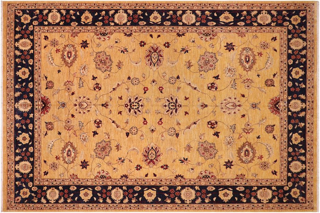 Shabby Chic Ziegler Loretta Gold Blue Hand-Knotted Wool Rug - 8'8'' x 11'4''