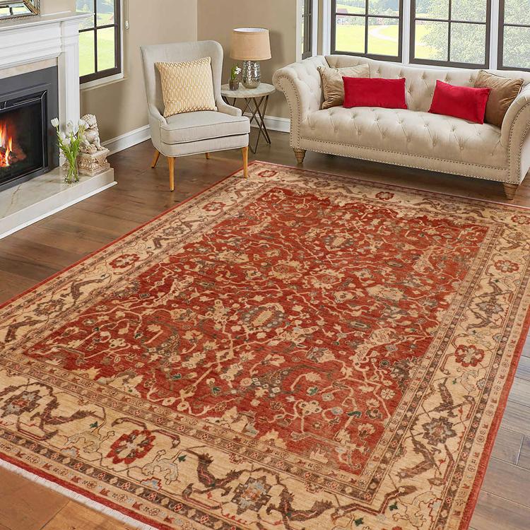 Shabby Chic Ziegler Inez Rust/Beige Hand-Knotted Wool Rug - 8'10'' x 11'10''