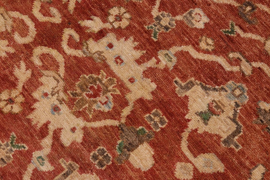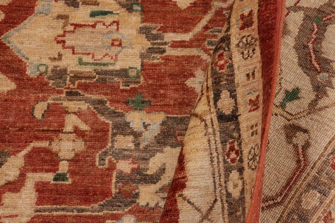 Enhance the ambiance of your home with this magnificent Persian-influenced Turkish hand-knotted rug made by skilled artisans capable of creating the most exceptional vegetable dyes and hand-spun wool. This exquisite handmade rug is a one-of-a-kind Peshawar Kafkaz, otherwise identified as Chobi, Chobi Peshawar, Oushak, or Ziegler rug. These handmade rugs are crafted in Pakistan utilizing superior-quality wool imported from Australia, New Zealand, and Korea in two types of weaves: the Persian weave and the Mori weave. This rug is meticulously crafted by hand using the finest natural vegetable dyes extracted from local plants. The artisans use a blend of hand-spun local and fine merino wool, resulting in a rug with a compelling texture, higher lanolin content, and longer staple. The artisans occasionally incorporate natural or artificial silk into the pile to enhance specific motifs. The finished product is an awe-inspiring flawless design execution and an understated palette that exudes elegance. Contemporary Peshawar rugs draw inspiration from antique Persian designs and feature modern design motifs with vibrant color tones. Hand-knotted with all-natural dyes, resulting in a unique abrash effect and subtle color variations in the pile. Peshawar rugs are known for their stunning and vibrant colors, which were achieved through a process inspired by antique methods. The rug's pile is meticulously trimmed to a moderate thickness and then stone-washed and sun-dried, resulting in a natural sheen and pleasing color tones. Transform the ambiance of your room into a luxurious haven with this gorgeous rug featuring a beautiful color palette. This stunning rug features an intricate oriental design that showcases royalty and seamlessly complements any decor. Its hand-knotted construction and natural fibers provide a soft and comfortable feel underfoot, making it the perfect addition to any room.