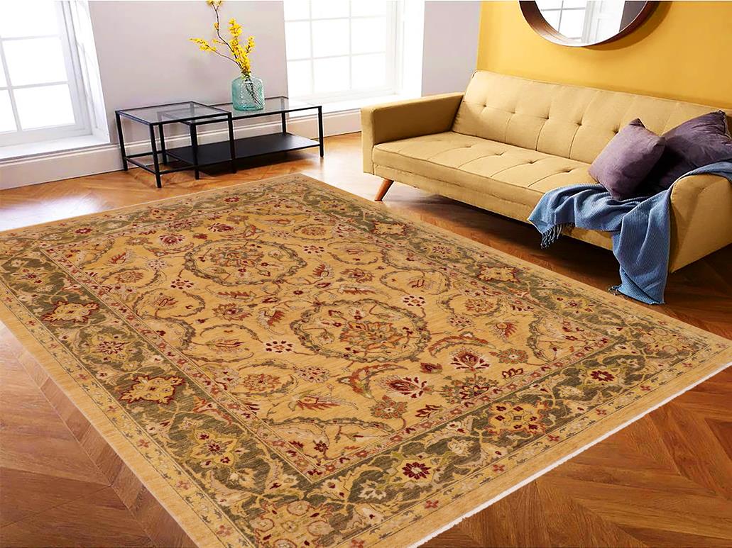 Oriental Ziegler Kristine Light Gold/Green Wool Rug - 8'8'' x 11'2''