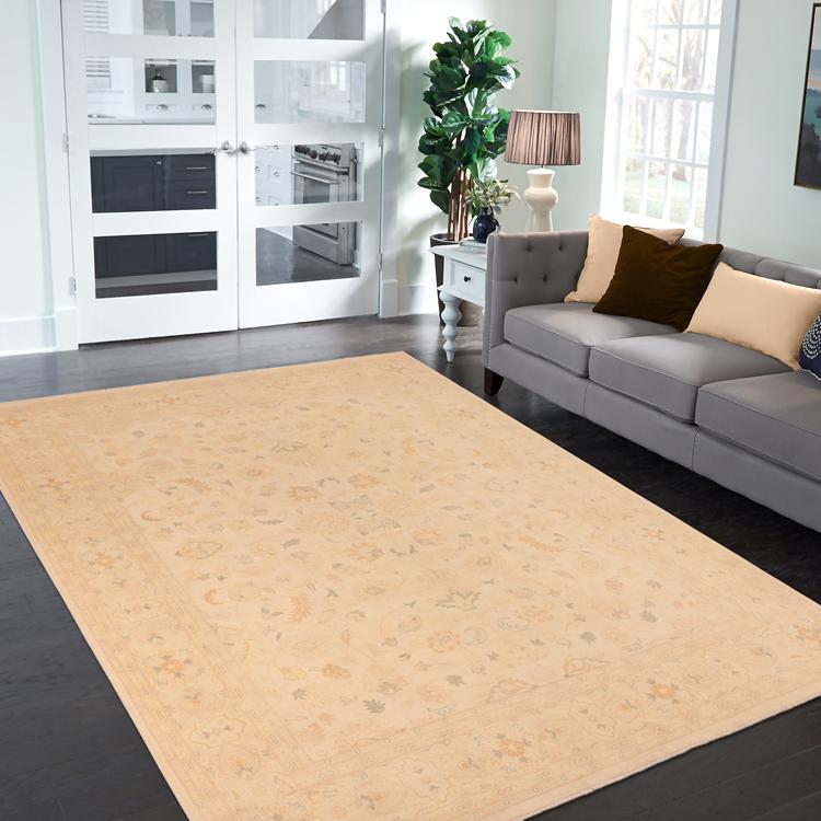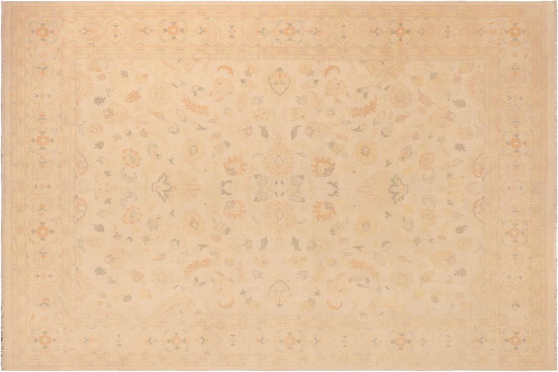 Eclectic Ziegler Pat Beige/Gold Hand-Knotted Wool Rug - 9'9'' x 12'8''