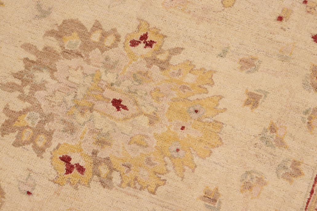 Enhance the ambiance of your home with this magnificent Persian-influenced Turkish hand-knotted rug made by skilled artisans capable of creating the most exceptional vegetable dyes and hand-spun wool. This exquisite handmade rug is a one-of-a-kind Peshawar Kafkaz, otherwise identified as Chobi, Chobi Peshawar, Oushak, or Ziegler rug. These handmade rugs are crafted in Pakistan utilizing superior-quality wool imported from Australia, New Zealand, and Korea in two types of weaves: the Persian weave and the Mori weave. This rug is meticulously crafted by hand using the finest natural vegetable dyes extracted from local plants. The artisans use a blend of hand-spun local and fine merino wool, resulting in a rug with a compelling texture, higher lanolin content, and longer staple. The artisans occasionally incorporate natural or artificial silk into the pile to enhance specific motifs. The finished product is an awe-inspiring execution of flawless design and an understated palette that exudes elegance. Contemporary Peshawar rugs draw inspiration from antique Persian designs and feature modern design motifs with vibrant color tones. Hand-knotted with all-natural dyes, resulting in a unique abrash effect and subtle color variations in the pile. Peshawar rugs are known for their stunning and vibrant colors, achieved through a process inspired by antique methods. The rug's pile is meticulously trimmed to a moderate thickness and then stone-washed and sun-dried, resulting in a natural sheen and pleasing color tones. Transform the ambiance of your room into a luxurious haven with this gorgeous rug featuring a beautiful color palette. This stunning rug features an intricate oriental design that showcases royalty and seamlessly complements any decor. Its hand-knotted construction and natural fibers provide a soft and comfortable feel underfoot, making it the perfect addition to any room.