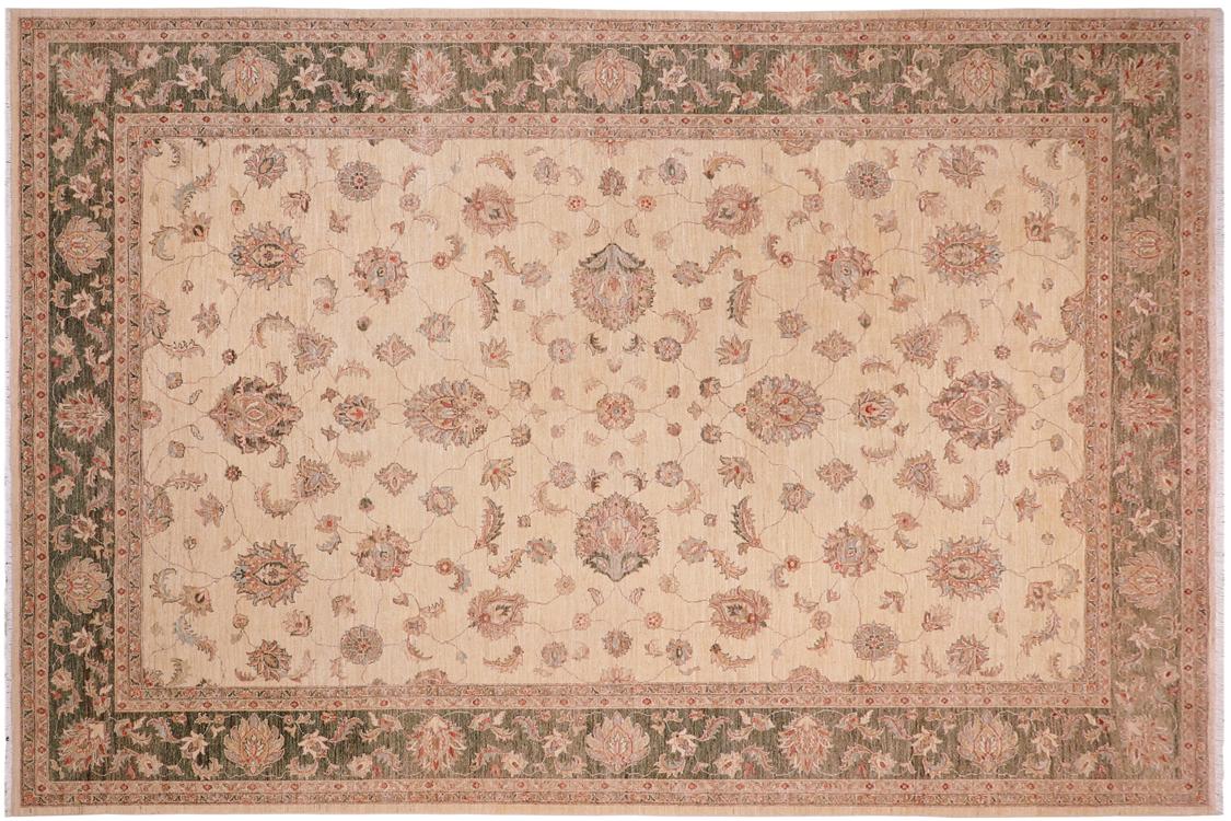 Shabby Chic Ziegler Patti Beige/Green Hand-Knotted Wool Rug - 10'0'' x 13'8''