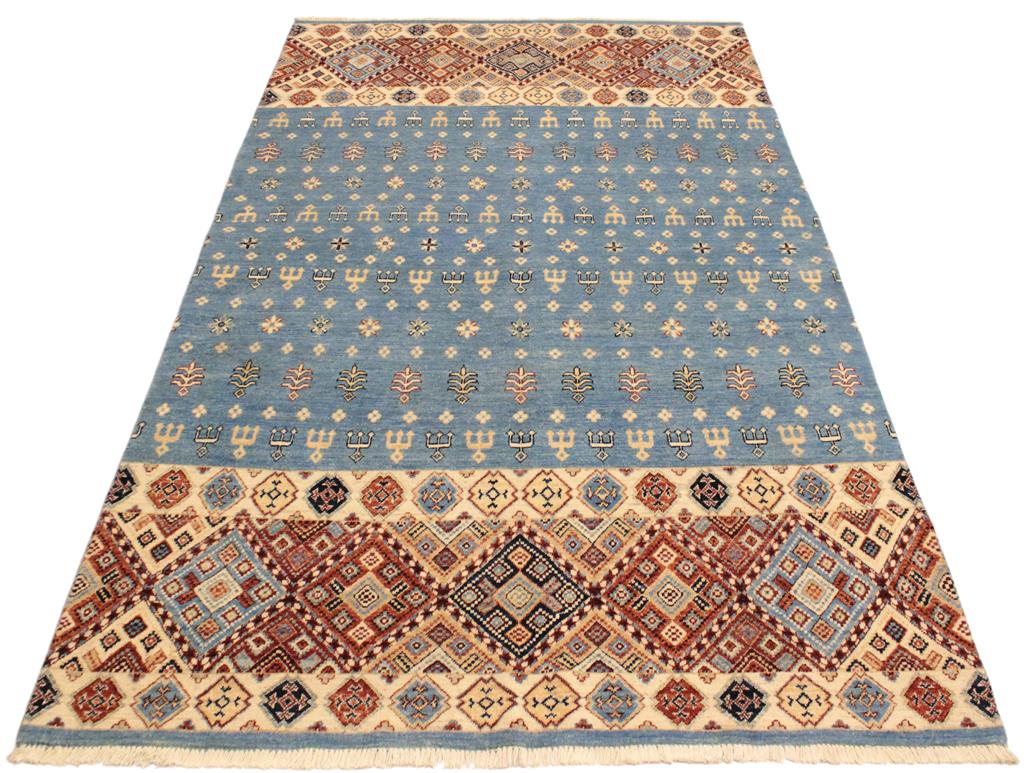 Tribal Khurgeen Adelaide Blue/Beige Wool Rug - 5'4'' x 7'10''