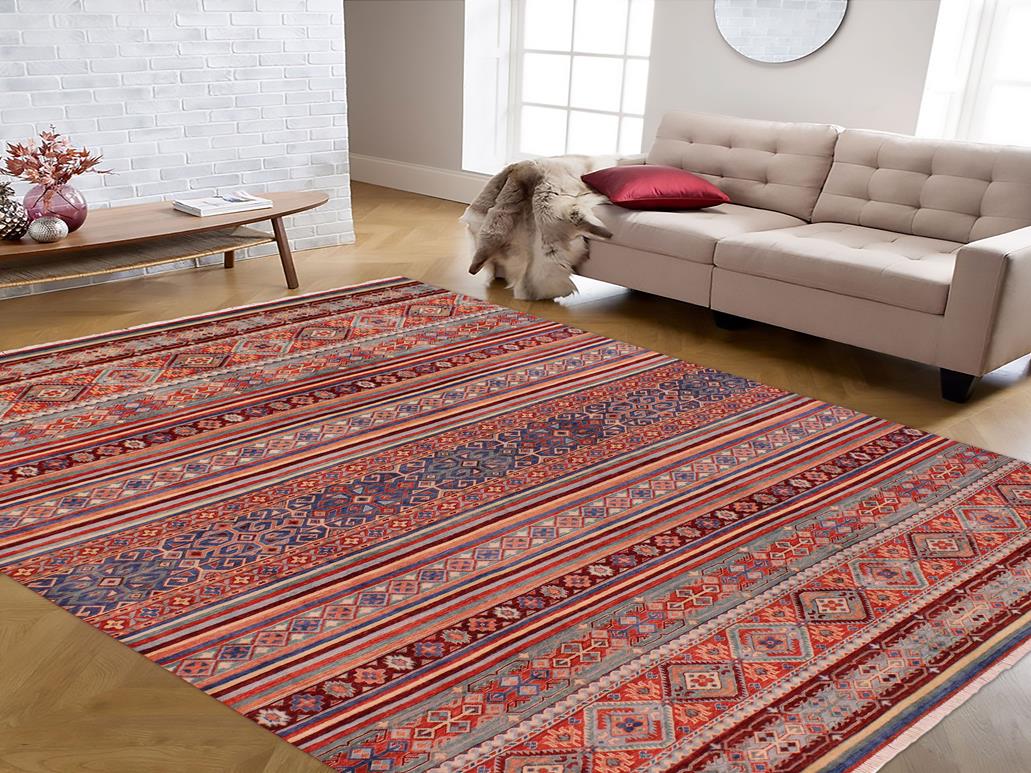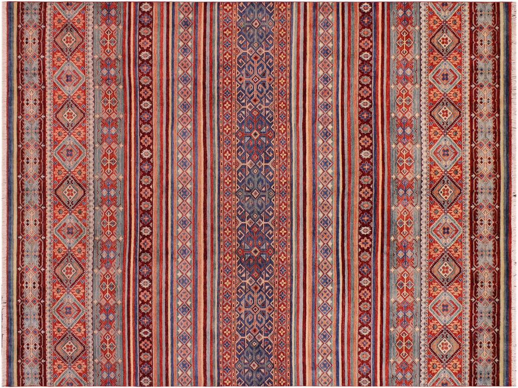 Bohemian Khurgeen Olivia Red/Blue Wool Rug - 9'1'' x 11'6''