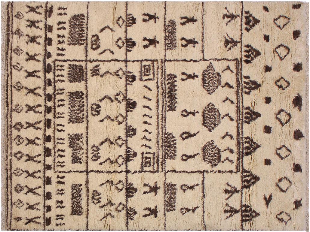 Tribal Moroccan Ghislain Ivory/Brown Wool Rug - 5'11'' x 9'0''