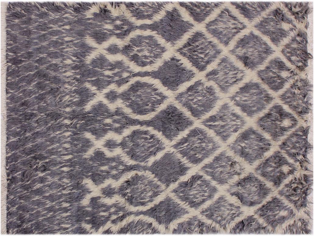 Shag Moroccan Isiah Gray/Ivory Wool Rug - 4'1'' x 5'11''