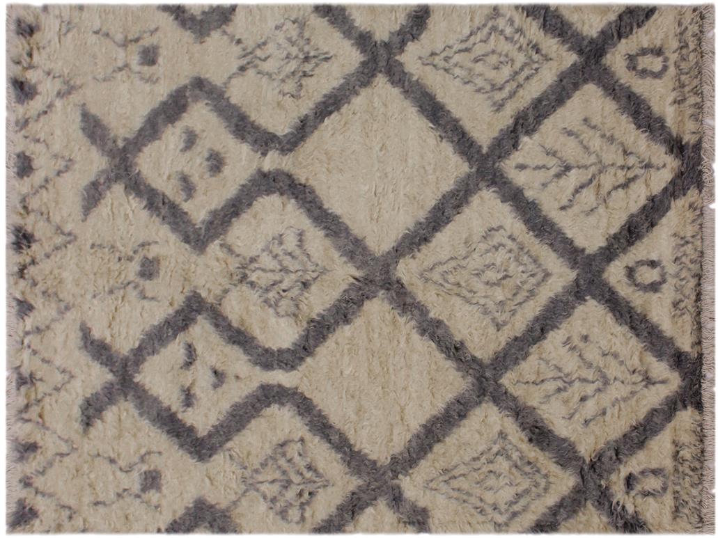 Modern Moroccan Stringer Ivory/Grey Wool Rug - 4'1'' x 6'1''