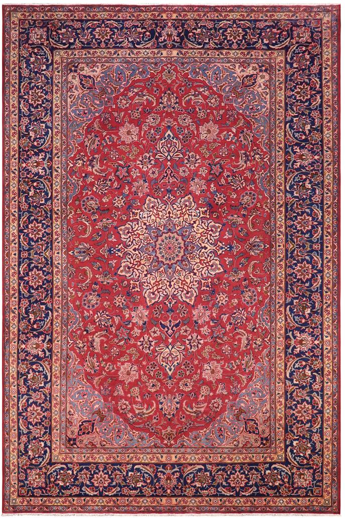 Vintage Antique Kashan Hayes Red/Blue Wool Rug - 9'8'' x 13'2''