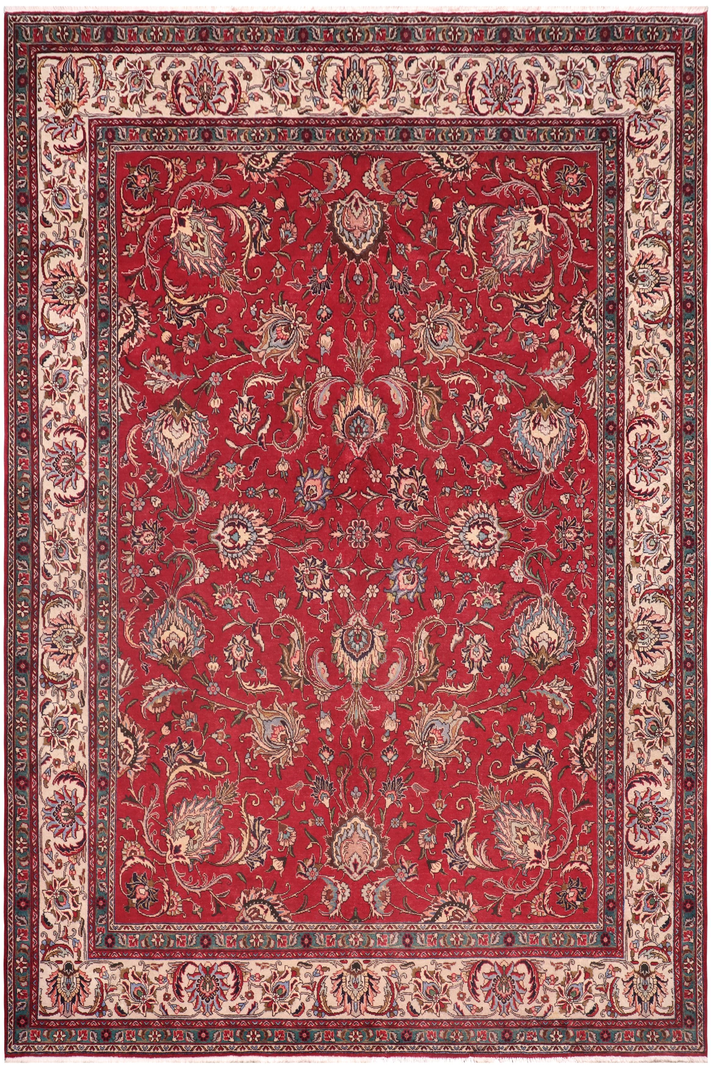 Distressed Antique Tabriz Watts Red/Beige Wool Rug - 9'7'' x 12'9''