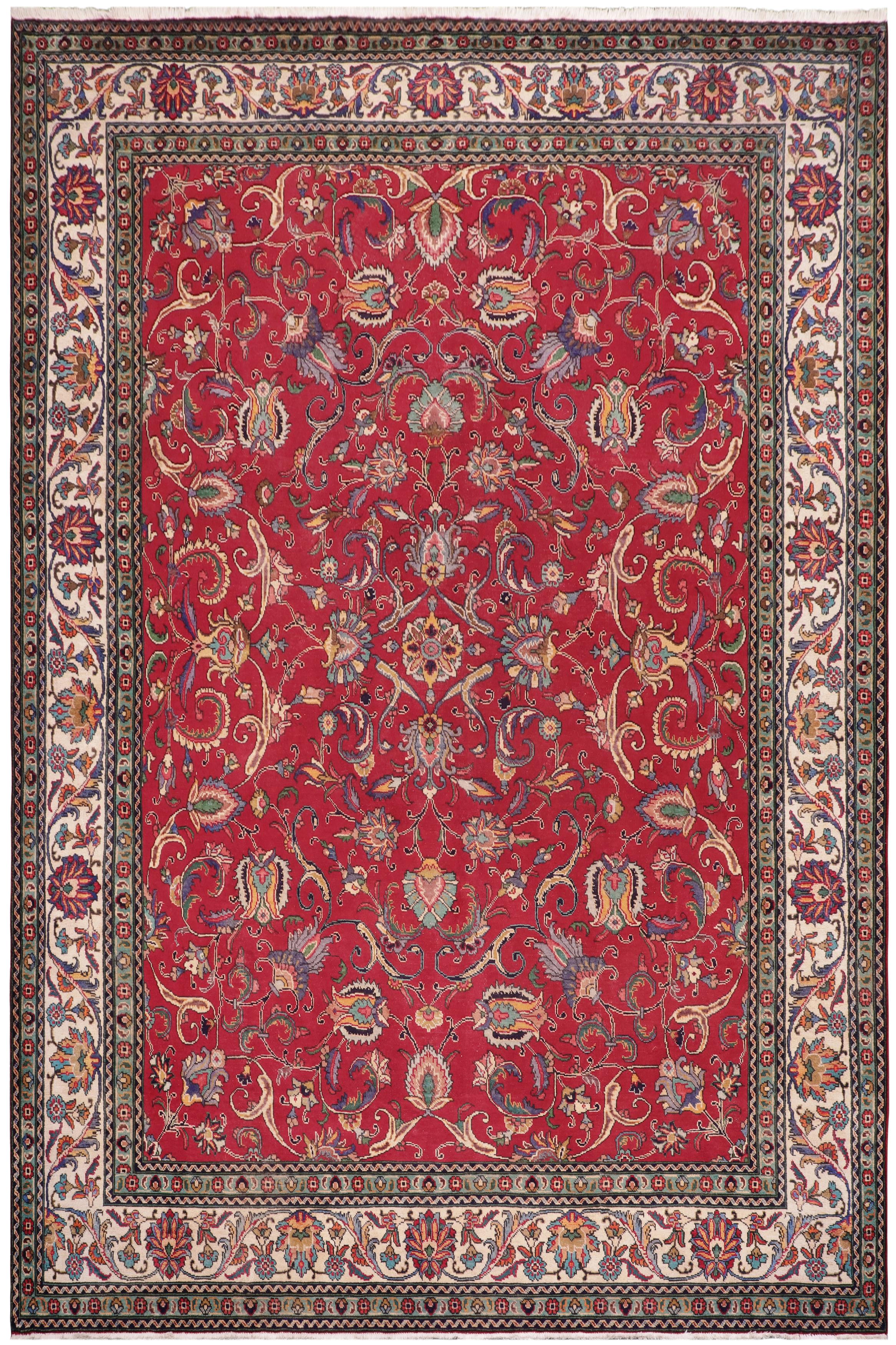 Vintage Antique Tabriz Fletcher Red/Beige Wool Rug - 10'1'' x 13'1''