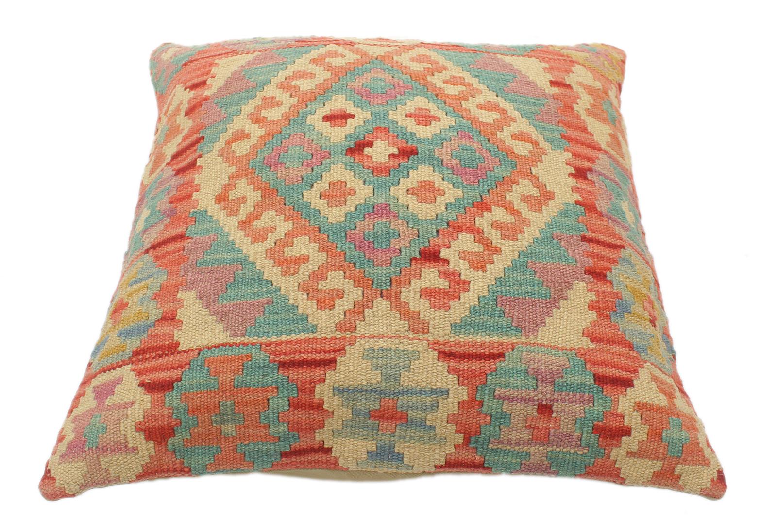 Embellish your home with this timeless casual chic handmade Southwestern Kilim throw pillow covers made with wool and cotton. Constructed on a loom by Nomad Turkman people with hand spun wool and Natural Vegetable dyes these beautiful Kilim pillow covers are known for their beautiful repetitive geometrical, naturalistic floral and traditional patterns yet still giving it a modern look. Masterfully artisan-crafted on traditional Kilim looms with a contemporary fashion palette producing bold intricate sharp patterns making them a standout piece in any decor.