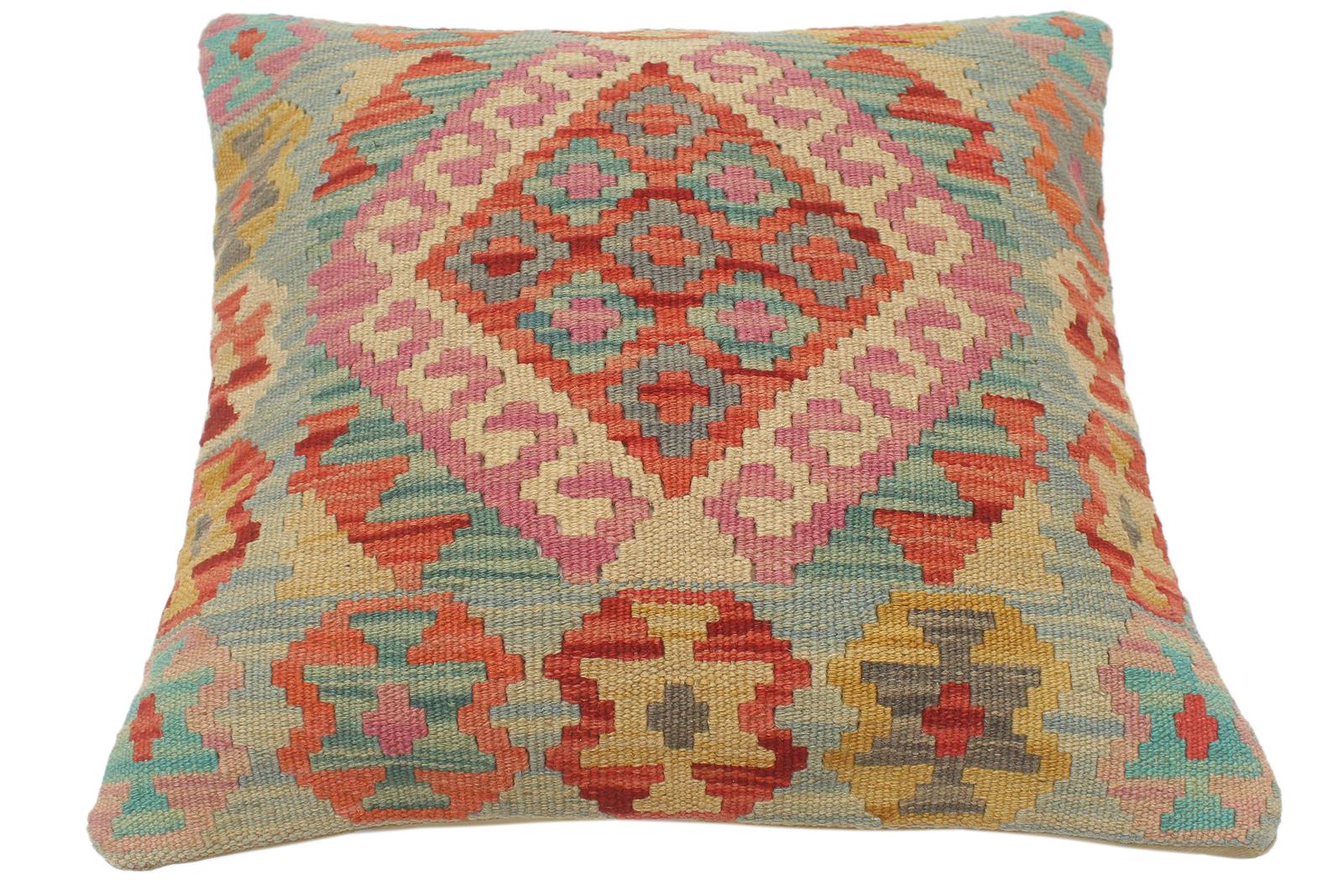 Embellish your home with this timeless casual chic handmade Southwestern Kilim throw pillow covers made with wool and cotton. Constructed on a loom by Nomad Turkman people with hand spun wool and Natural Vegetable dyes these beautiful Kilim pillow covers are known for their beautiful repetitive geometrical, naturalistic floral and traditional patterns yet still giving it a modern look. Masterfully artisan-crafted on traditional Kilim looms with a contemporary fashion palette producing bold intricate sharp patterns making them a standout piece in any decor.