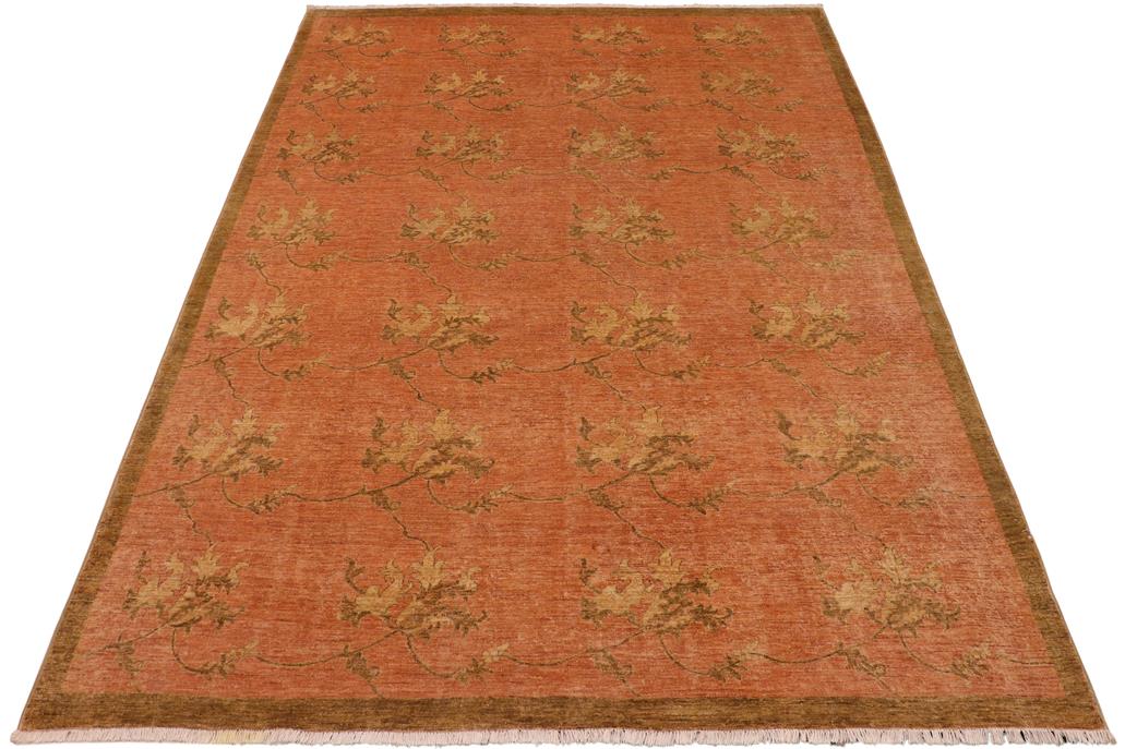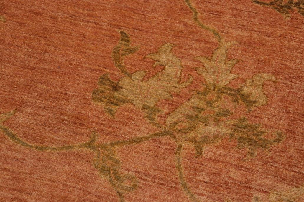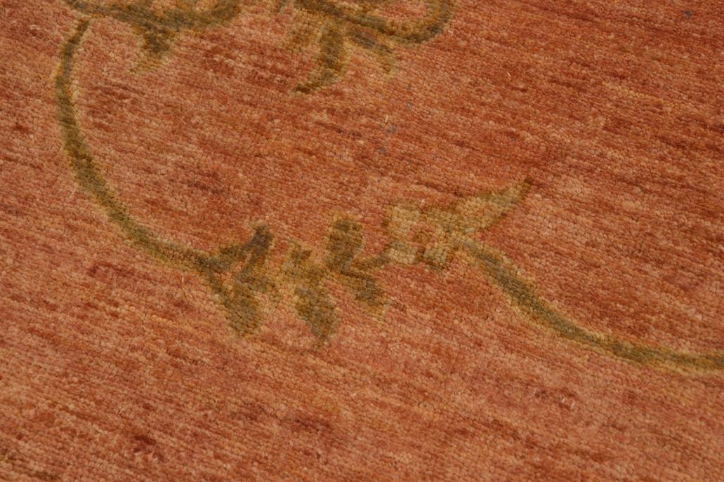 Enhance the ambiance of your home with this magnificent Persian-influenced Turkish hand-knotted rug made by skilled artisans capable of creating the most exceptional vegetable dyes and hand-spun wool. This exquisite handmade rug is a one-of-a-kind Peshawar Kafkaz, otherwise identified as Chobi, Chobi Peshawar, Oushak, or Ziegler rug. These handmade rugs are crafted in Pakistan utilizing superior-quality wool imported from Australia, New Zealand, and Korea in two types of weaves: the Persian weave and the Mori weave. This rug is meticulously crafted by hand using the finest natural vegetable dyes extracted from local plants. The artisans use a blend of hand-spun local and fine merino wool, resulting in a rug with a compelling texture, higher lanolin content, and longer staple. The artisans occasionally incorporate natural or artificial silk into the pile to enhance specific motifs. The finished product is an awe-inspiring execution of flawless design and an understated palette that exudes elegance. Contemporary Peshawar rugs draw inspiration from antique Persian designs and feature modern design motifs with vibrant color tones. Hand-knotted with all-natural dyes, resulting in a unique abrash effect and subtle color variations in the pile. Peshawar rugs are known for their stunning and vibrant colors, achieved through a process inspired by antique methods. The rug's pile is meticulously trimmed to a moderate thickness and then stone-washed and sun-dried, resulting in a natural sheen and pleasing color tones. Transform the ambiance of your room into a luxurious haven with this gorgeous rug featuring a beautiful color palette. This stunning rug features an intricate oriental design that showcases royalty and seamlessly complements any decor. Its hand-knotted construction and natural fibers provide a soft and comfortable feel underfoot, making it the perfect addition to any room.