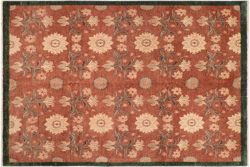 Oriental Ziegler Ofelia Brown Green Hand-Knotted Wool Rug - 7'8'' x 8'8''