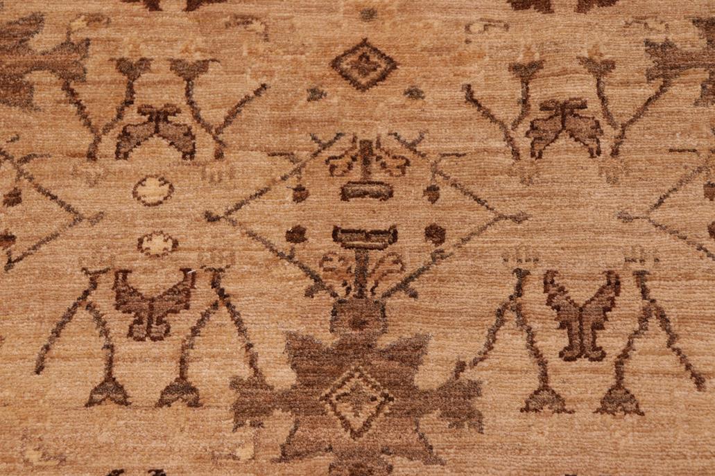 Enhance the ambiance of your home with this magnificent Persian-influenced Turkish hand-knotted rug made by skilled artisans capable of creating the most exceptional vegetable dyes and hand-spun wool. This exquisite handmade rug is a one-of-a-kind Peshawar Kafkaz, otherwise identified as Chobi, Chobi Peshawar, Oushak, or Ziegler rug. These handmade rugs are crafted in Pakistan utilizing superior-quality wool imported from Australia, New Zealand, and Korea in two types of weaves: the Persian weave and the Mori weave. This rug is meticulously crafted by hand using the finest natural vegetable dyes extracted from local plants. The artisans use a blend of hand-spun local and fine merino wool, resulting in a rug with a compelling texture, higher lanolin content, and longer staple. The artisans occasionally incorporate natural or artificial silk into the pile to enhance specific motifs. The finished product is an awe-inspiring execution of flawless design and an understated palette that exudes elegance. Contemporary Peshawar rugs draw inspiration from antique Persian designs and feature modern design motifs with vibrant color tones. Hand-knotted with all-natural dyes, resulting in a unique abrash effect and subtle color variations in the pile. Peshawar rugs are known for their stunning and vibrant colors, achieved through a process inspired by antique methods. The rug's pile is meticulously trimmed to a moderate thickness and then stone-washed and sun-dried, resulting in a natural sheen and pleasing color tones. Transform the ambiance of your room into a luxurious haven with this gorgeous rug featuring a beautiful color palette. This stunning rug features an intricate oriental design that showcases royalty and seamlessly complements any decor. Its hand-knotted construction and natural fibers provide a soft and comfortable feel underfoot, making it the perfect addition to any room.