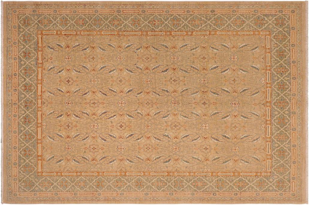 Classic Ziegler Lashawna Tan Green Hand-Knotted Wool Rug - 8'10'' x 10'1''