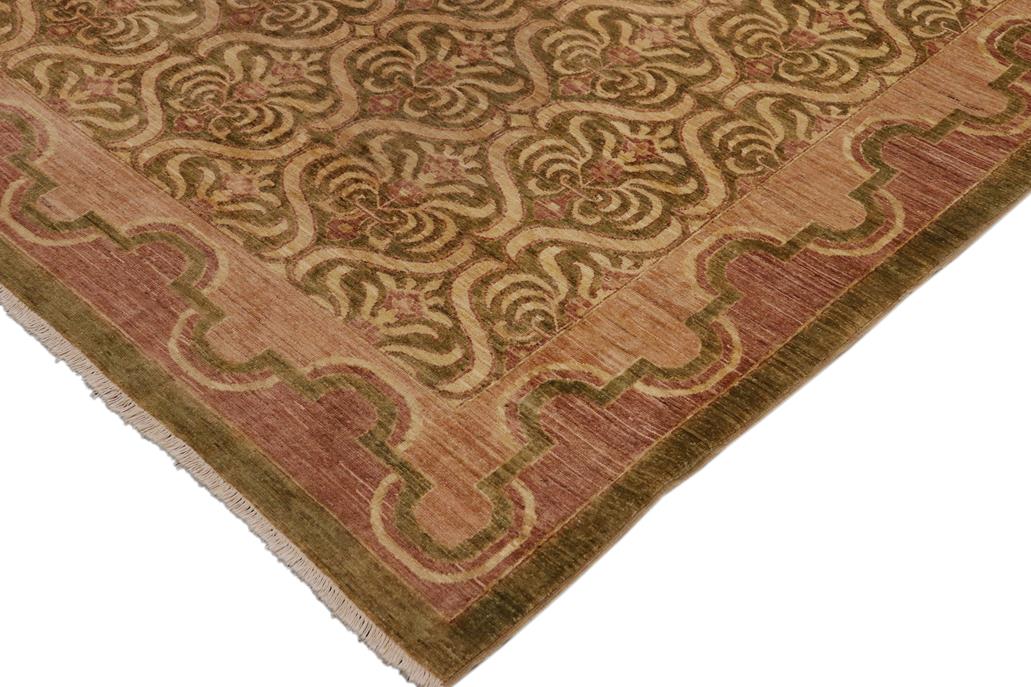 Classic Ziegler Lucina Green Brown Hand-Knotted Wool Rug - 9'0'' x 11'9''