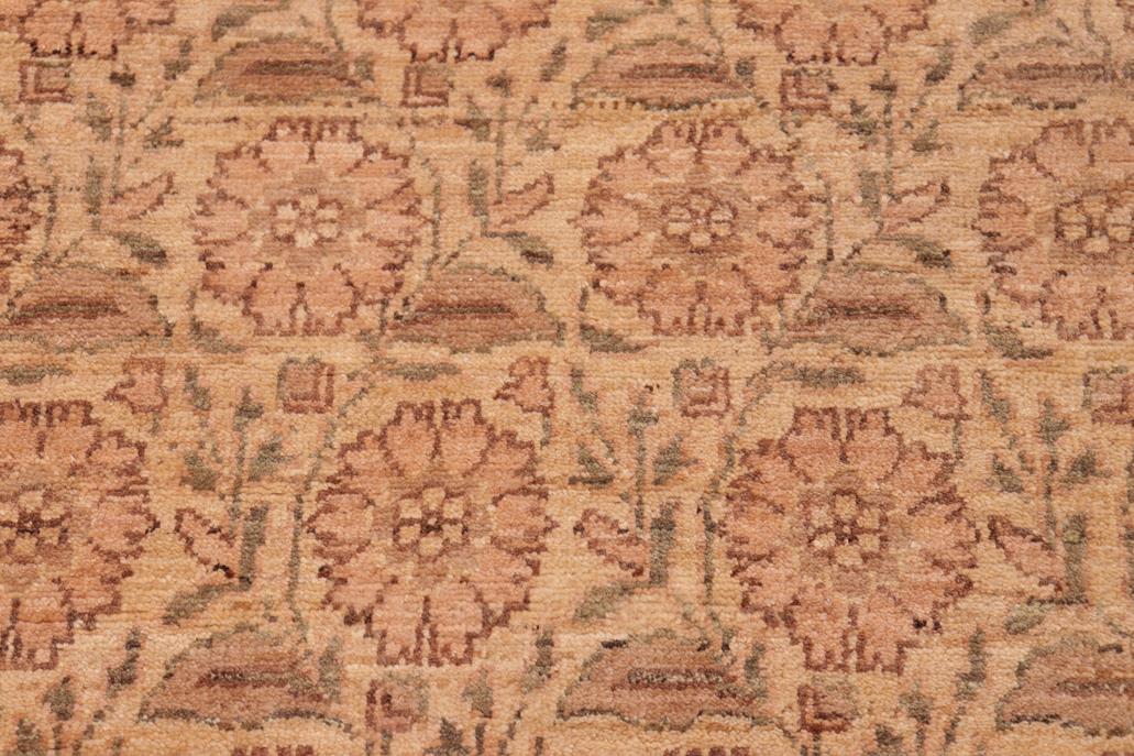 Enhance the ambiance of your home with this magnificent Persian-influenced Turkish hand-knotted rug made by skilled artisans capable of creating the most exceptional vegetable dyes and hand-spun wool. This exquisite handmade rug is a one-of-a-kind Peshawar Kafkaz, otherwise identified as Chobi, Chobi Peshawar, Oushak, or Ziegler rug. These handmade rugs are crafted in Pakistan utilizing superior-quality wool imported from Australia, New Zealand, and Korea in two types of weaves: the Persian weave and the Mori weave. This rug is meticulously crafted by hand using the finest natural vegetable dyes extracted from local plants. The artisans use a blend of hand-spun local and fine merino wool, resulting in a rug with a compelling texture, higher lanolin content, and longer staple. The artisans occasionally incorporate natural or artificial silk into the pile to enhance specific motifs. The finished product is an awe-inspiring execution of flawless design and an understated palette that exudes elegance. Contemporary Peshawar rugs draw inspiration from antique Persian designs and feature modern design motifs with vibrant color tones. Hand-knotted with all-natural dyes, resulting in a unique abrash effect and subtle color variations in the pile. Peshawar rugs are known for their stunning and vibrant colors, achieved through a process inspired by antique methods. The rug's pile is meticulously trimmed to a moderate thickness and then stone-washed and sun-dried, resulting in a natural sheen and pleasing color tones. Transform the ambiance of your room into a luxurious haven with this gorgeous rug featuring a beautiful color palette. This stunning rug features an intricate oriental design that showcases royalty and seamlessly complements any decor. Its hand-knotted construction and natural fibers provide a soft and comfortable feel underfoot, making it the perfect addition to any room.