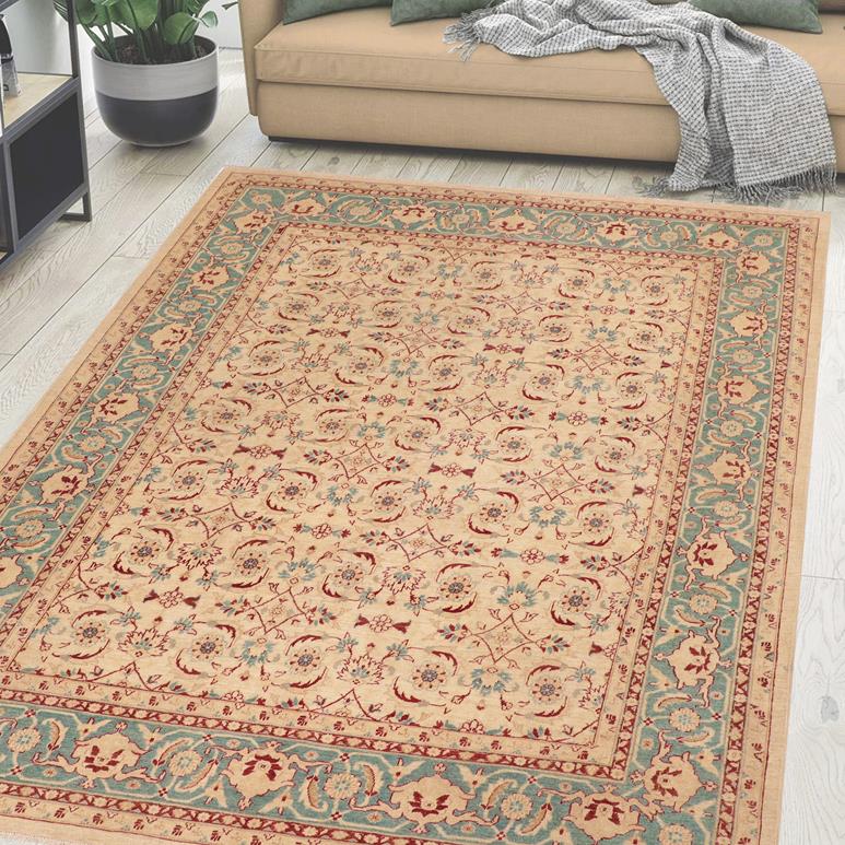 Shabby Chic Ziegler Laurena Beige Green Hand-Knotted Wool Rug - 8'1'' x 9'8''
