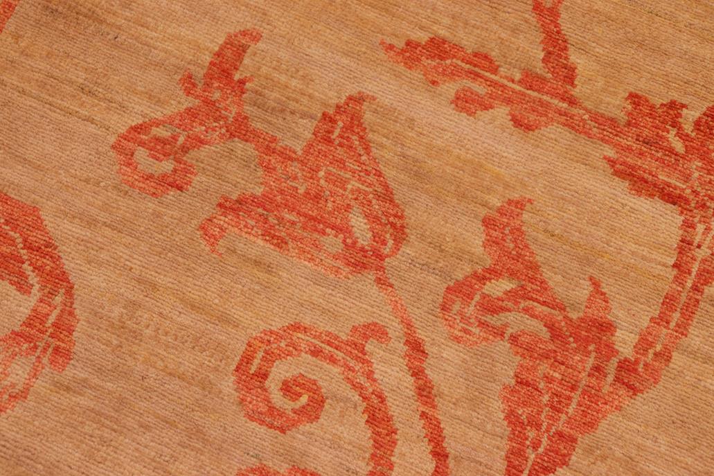 Enhance the ambiance of your home with this magnificent Persian-influenced Turkish hand-knotted rug made by skilled artisans capable of creating the most exceptional vegetable dyes and hand-spun wool. This exquisite handmade rug is a one-of-a-kind Peshawar Kafkaz, otherwise identified as Chobi, Chobi Peshawar, Oushak, or Ziegler rug. These handmade rugs are crafted in Pakistan utilizing superior-quality wool imported from Australia, New Zealand, and Korea in two types of weaves: the Persian weave and the Mori weave. This rug is meticulously crafted by hand using the finest natural vegetable dyes extracted from local plants. The artisans use a blend of hand-spun local and fine merino wool, resulting in a rug with a compelling texture, higher lanolin content, and longer staple. The artisans occasionally incorporate natural or artificial silk into the pile to enhance specific motifs. The finished product is an awe-inspiring execution of flawless design and an understated palette that exudes elegance. Contemporary Peshawar rugs draw inspiration from antique Persian designs and feature modern design motifs with vibrant color tones. Hand-knotted with all-natural dyes, resulting in a unique abrash effect and subtle color variations in the pile. Peshawar rugs are known for their stunning and vibrant colors, achieved through a process inspired by antique methods. The rug's pile is meticulously trimmed to a moderate thickness and then stone-washed and sun-dried, resulting in a natural sheen and pleasing color tones. Transform the ambiance of your room into a luxurious haven with this gorgeous rug featuring a beautiful color palette. This stunning rug features an intricate oriental design that showcases royalty and seamlessly complements any decor. Its hand-knotted construction and natural fibers provide a soft and comfortable feel underfoot, making it the perfect addition to any room.