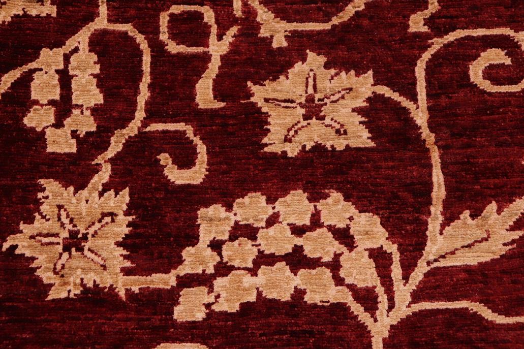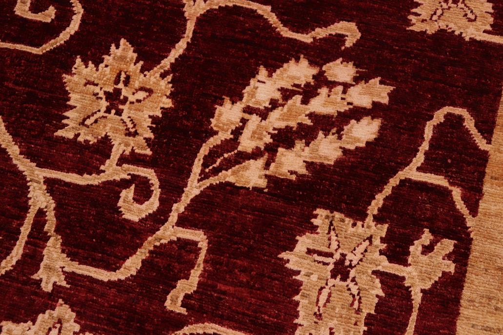 Enhance the ambiance of your home with this magnificent Persian-influenced Turkish hand-knotted rug made by skilled artisans capable of creating the most exceptional vegetable dyes and hand-spun wool. This exquisite handmade rug is a one-of-a-kind Peshawar Kafkaz, otherwise identified as Chobi, Chobi Peshawar, Oushak, or Ziegler rug. These handmade rugs are crafted in Pakistan utilizing superior-quality wool imported from Australia, New Zealand, and Korea in two types of weaves: the Persian weave and the Mori weave. This rug is meticulously crafted by hand using the finest natural vegetable dyes extracted from local plants. The artisans use a blend of hand-spun local and fine merino wool, resulting in a rug with a compelling texture, higher lanolin content, and longer staple. The artisans occasionally incorporate natural or artificial silk into the pile to enhance specific motifs. The finished product is an awe-inspiring execution of flawless design and an understated palette that exudes elegance. Contemporary Peshawar rugs draw inspiration from antique Persian designs and feature modern design motifs with vibrant color tones. Hand-knotted with all-natural dyes, resulting in a unique abrash effect and subtle color variations in the pile. Peshawar rugs are known for their stunning and vibrant colors, achieved through a process inspired by antique methods. The rug's pile is meticulously trimmed to a moderate thickness and then stone-washed and sun-dried, resulting in a natural sheen and pleasing color tones. Transform the ambiance of your room into a luxurious haven with this gorgeous rug featuring a beautiful color palette. This stunning rug features an intricate oriental design that showcases royalty and seamlessly complements any decor. Its hand-knotted construction and natural fibers provide a soft and comfortable feel underfoot, making it the perfect addition to any room.