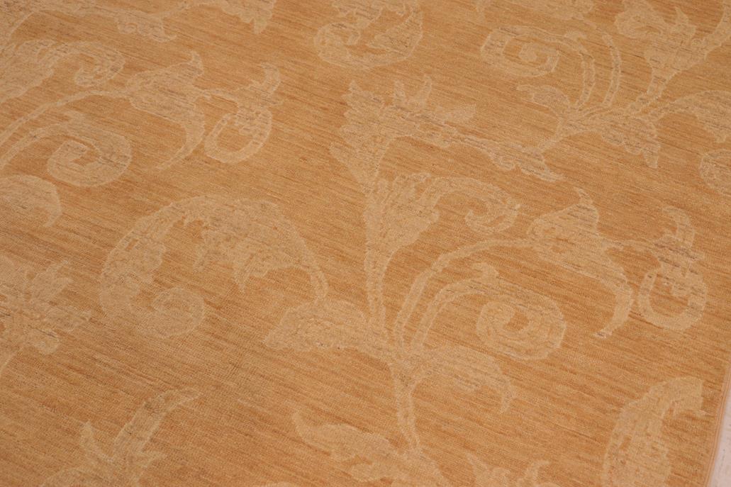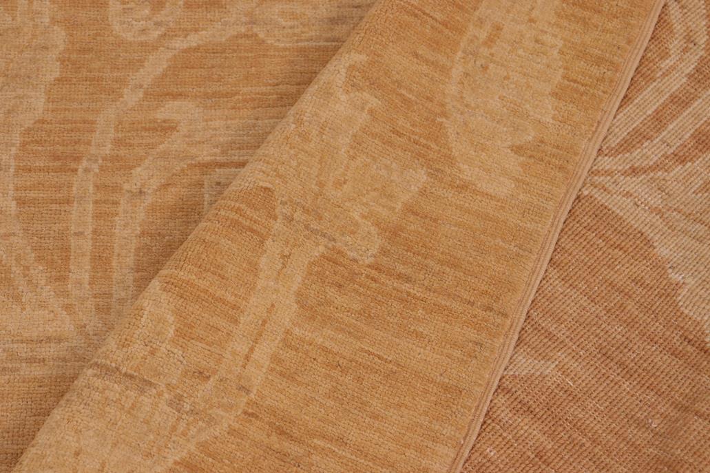 Enhance the ambiance of your home with this magnificent Persian-influenced Turkish hand-knotted rug made by skilled artisans capable of creating the most exceptional vegetable dyes and hand-spun wool. This exquisite handmade rug is a one-of-a-kind Peshawar Kafkaz, otherwise identified as Chobi, Chobi Peshawar, Oushak, or Ziegler rug. These handmade rugs are crafted in Pakistan utilizing superior-quality wool imported from Australia, New Zealand, and Korea in two types of weaves: the Persian weave and the Mori weave. This rug is meticulously crafted by hand using the finest natural vegetable dyes extracted from local plants. The artisans use a blend of hand-spun local and fine merino wool, resulting in a rug with a compelling texture, higher lanolin content, and longer staple. The artisans occasionally incorporate natural or artificial silk into the pile to enhance specific motifs. The finished product is an awe-inspiring execution of flawless design and an understated palette that exudes elegance. Contemporary Peshawar rugs draw inspiration from antique Persian designs and feature modern design motifs with vibrant color tones. Hand-knotted with all-natural dyes, resulting in a unique abrash effect and subtle color variations in the pile. Peshawar rugs are known for their stunning and vibrant colors, achieved through a process inspired by antique methods. The rug's pile is meticulously trimmed to a moderate thickness and then stone-washed and sun-dried, resulting in a natural sheen and pleasing color tones. Transform the ambiance of your room into a luxurious haven with this gorgeous rug featuring a beautiful color palette. This stunning rug features an intricate oriental design that showcases royalty and seamlessly complements any decor. Its hand-knotted construction and natural fibers provide a soft and comfortable feel underfoot, making it the perfect addition to any room.