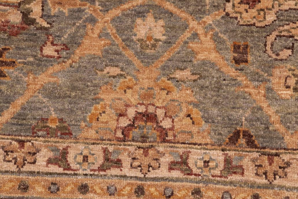 Enhance the ambiance of your home with this magnificent Persian-influenced Turkish hand-knotted rug made by skilled artisans capable of creating the most exceptional vegetable dyes and hand-spun wool. This exquisite handmade rug is a one-of-a-kind Peshawar Kafkaz, otherwise identified as Chobi, Chobi Peshawar, Oushak, or Ziegler rug. These handmade rugs are crafted in Pakistan utilizing superior-quality wool imported from Australia, New Zealand, and Korea in two types of weaves: the Persian weave and the Mori weave. This rug is meticulously crafted by hand using the finest natural vegetable dyes extracted from local plants. The artisans use a blend of hand-spun local and fine merino wool, resulting in a rug with a compelling texture, higher lanolin content, and longer staple. The artisans occasionally incorporate natural or artificial silk into the pile to enhance specific motifs. The finished product is an awe-inspiring execution of flawless design and an understated palette that exudes elegance. Contemporary Peshawar rugs draw inspiration from antique Persian designs and feature modern design motifs with vibrant color tones. Hand-knotted with all-natural dyes, resulting in a unique abrash effect and subtle color variations in the pile. Peshawar rugs are known for their stunning and vibrant colors, achieved through a process inspired by antique methods. The rug's pile is meticulously trimmed to a moderate thickness and then stone-washed and sun-dried, resulting in a natural sheen and pleasing color tones. Transform the ambiance of your room into a luxurious haven with this gorgeous rug featuring a beautiful color palette. This stunning rug features an intricate oriental design that showcases royalty and seamlessly complements any decor. Its hand-knotted construction and natural fibers provide a soft and comfortable feel underfoot, making it the perfect addition to any room.