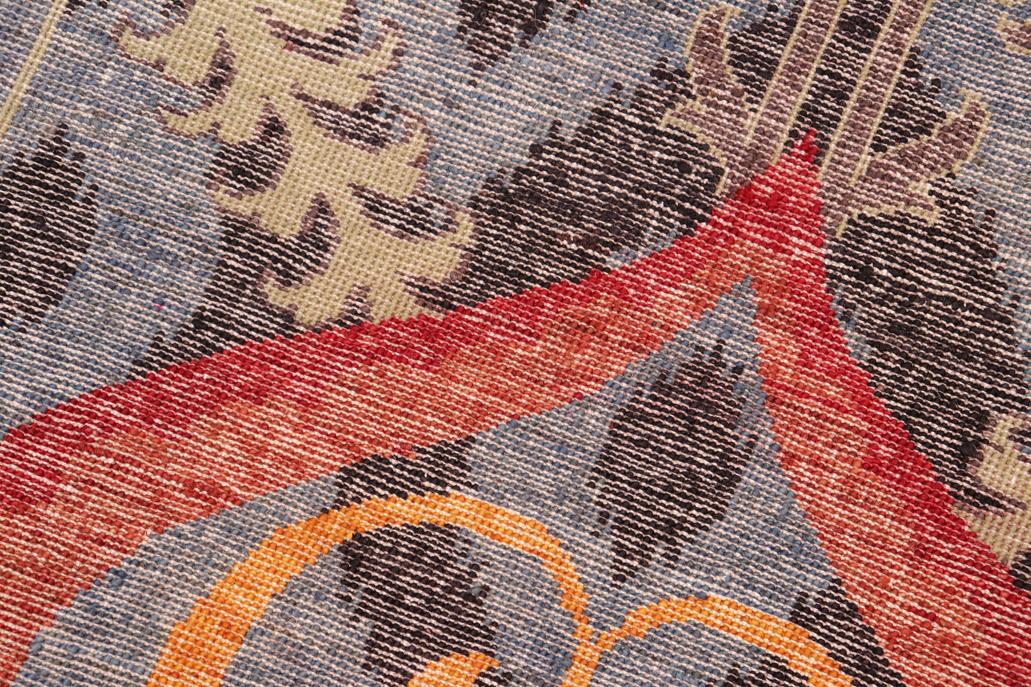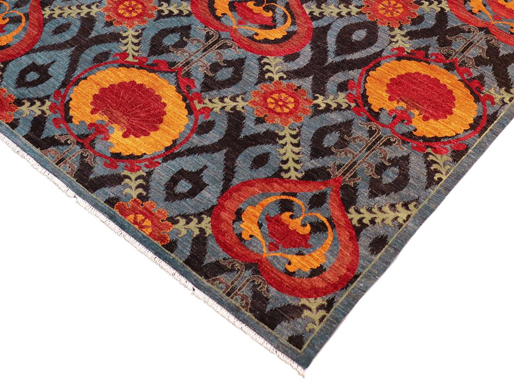 Enhance the ambiance of your home with this magnificent Persian-influenced Turkish hand-knotted rug made by skilled artisans capable of creating the most exceptional vegetable dyes and hand-spun wool. This exquisite handmade rug is a one-of-a-kind Peshawar Kafkaz, otherwise identified as Chobi, Chobi Peshawar, Oushak, or Ziegler rug. These handmade rugs are crafted in Pakistan utilizing superior-quality wool imported from Australia, New Zealand, and Korea in two types of weaves: the Persian weave and the Mori weave. This rug is meticulously crafted by hand using the finest natural vegetable dyes extracted from local plants. The artisans use a blend of hand-spun local and fine merino wool, resulting in a rug with a compelling texture, higher lanolin content, and longer staple. The artisans occasionally incorporate natural or artificial silk into the pile to enhance specific motifs. The finished product is an awe-inspiring execution of flawless design and an understated palette that exudes elegance. Contemporary Peshawar rugs draw inspiration from antique Persian designs and feature modern design motifs with vibrant color tones. Hand-knotted with all-natural dyes, resulting in a unique abrash effect and subtle color variations in the pile. Peshawar rugs are known for their stunning and vibrant colors, achieved through a process inspired by antique methods. The rug's pile is meticulously trimmed to a moderate thickness and then stone-washed and sun-dried, resulting in a natural sheen and pleasing color tones. Transform the ambiance of your room into a luxurious haven with this gorgeous rug featuring a beautiful color palette. This stunning rug features an intricate oriental design that showcases royalty and seamlessly complements any decor. Its hand-knotted construction and natural fibers provide a soft and comfortable feel underfoot, making it the perfect addition to any room.
