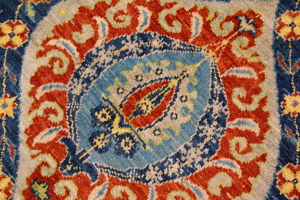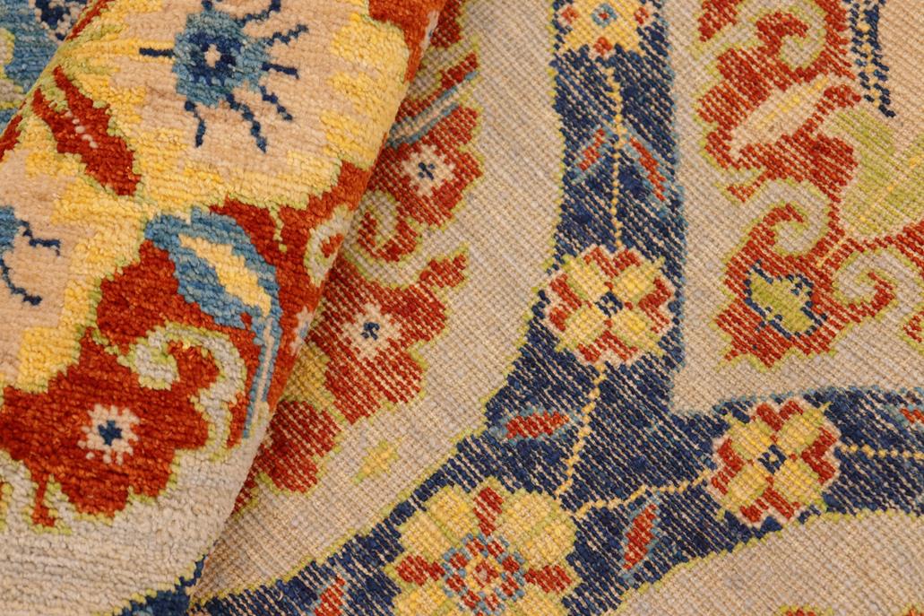 Enhance the ambiance of your home with this magnificent Persian-influenced Turkish hand-knotted rug made by skilled artisans capable of creating the most exceptional vegetable dyes and hand-spun wool. This exquisite handmade rug is a one-of-a-kind Peshawar Kafkaz, otherwise identified as Chobi, Chobi Peshawar, Oushak, or Ziegler rug. These handmade rugs are crafted in Pakistan utilizing superior-quality wool imported from Australia, New Zealand, and Korea in two types of weaves: the Persian weave and the Mori weave. This rug is meticulously crafted by hand using the finest natural vegetable dyes extracted from local plants. The artisans use a blend of hand-spun local and fine merino wool, resulting in a rug with a compelling texture, higher lanolin content, and longer staple. The artisans occasionally incorporate natural or artificial silk into the pile to enhance specific motifs. The finished product is an awe-inspiring execution of flawless design and an understated palette that exudes elegance. Contemporary Peshawar rugs draw inspiration from antique Persian designs and feature modern design motifs with vibrant color tones. Hand-knotted with all-natural dyes, resulting in a unique abrash effect and subtle color variations in the pile. Peshawar rugs are known for their stunning and vibrant colors, achieved through a process inspired by antique methods. The rug's pile is meticulously trimmed to a moderate thickness and then stone-washed and sun-dried, resulting in a natural sheen and pleasing color tones. Transform the ambiance of your room into a luxurious haven with this gorgeous rug featuring a beautiful color palette. This stunning rug features an intricate oriental design that showcases royalty and seamlessly complements any decor. Its hand-knotted construction and natural fibers provide a soft and comfortable feel underfoot, making it the perfect addition to any room.