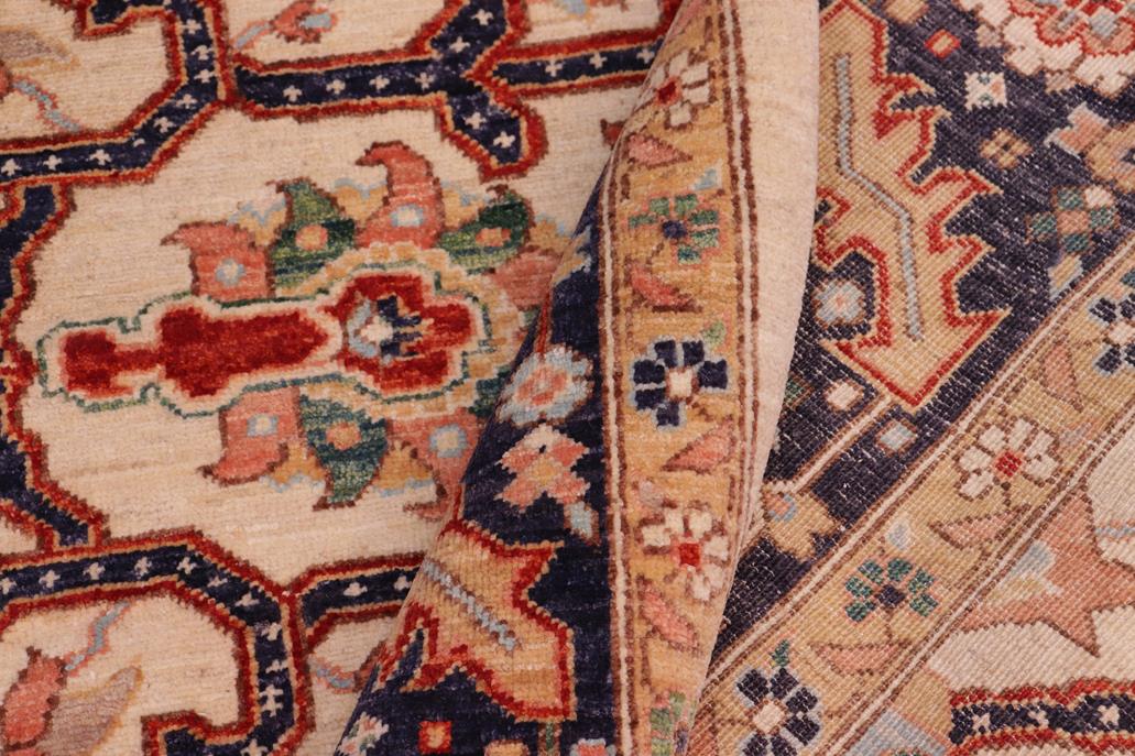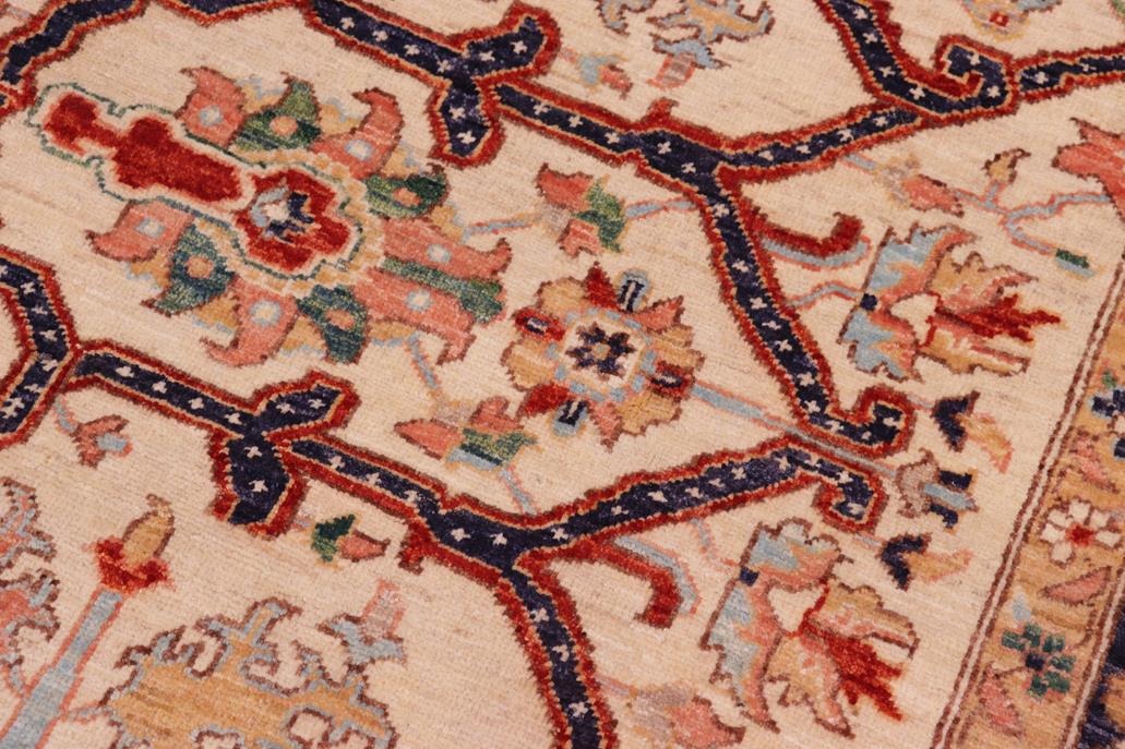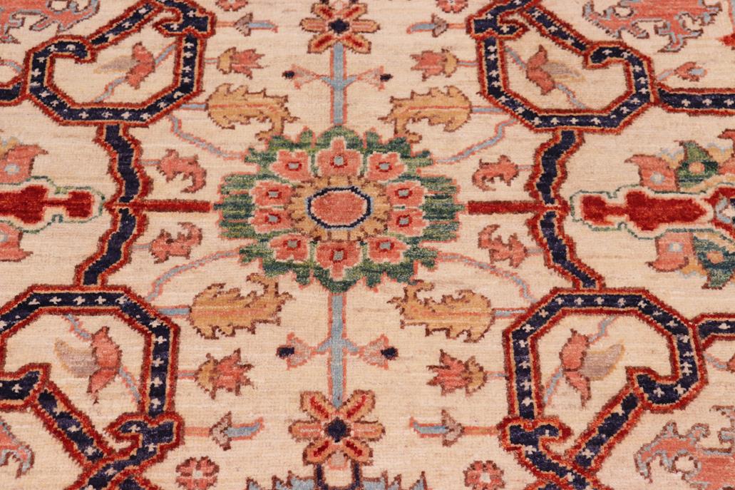 A Persian influenced Turkish hand knotted rug made by skilled artisans capable of creating the most exceptional vegetable dyes and hand-spun New Zealand wool. This gorgeous one of a kind handmade rugs is also known as a Chobi Ziegler Rug. This gorgeous rug is extremely versatile and is famous for its pleasing color palette and informal design that works in a myriad of interiors. It has been expertly hand-tied, finished, sun-dried, and can contain up to 1.5 million knots. It takes 4 skilled artisans to hand knot this rug nine to twelve months to complete this piece of art. The invigorating colors and patterns in this rug will give your home an elegant and fresh appearance. While drawing upon the coloring and patterns of antique rugs, contemporary pieces incorporate modern design motifs and feature vibrant color tones. Give your room a luxurious look and feel with this beautiful rug with gorgeous color pallet. The intricate design allows this oriental rug to create a royal ambience in any d̩cor. Hand knotted construction and natural fibers gives this rug soft feel under your feet.