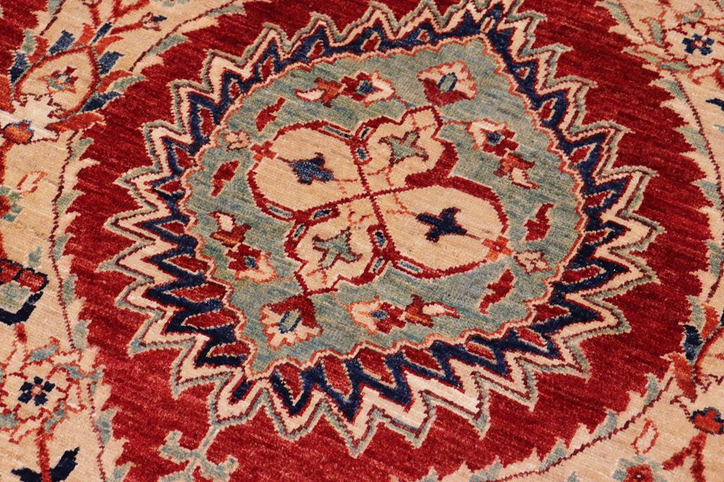 A Persian influenced Turkish hand knotted rug made by skilled artisans capable of creating the most exceptional vegetable dyes and hand-spun New Zealand wool. This gorgeous one of a kind handmade rugs is also known as a Chobi Ziegler Rug. This gorgeous rug is extremely versatile and is famous for its pleasing color palette and informal design that works in a myriad of interiors. It has been expertly hand-tied, finished, sun-dried, and can contain up to 1.5 million knots. It takes 4 skilled artisans to hand knot this rug nine to twelve months to complete this piece of art. The invigorating colors and patterns in this rug will give your home an elegant and fresh appearance. While drawing upon the coloring and patterns of antique rugs, contemporary pieces incorporate modern design motifs and feature vibrant color tones. Give your room a luxurious look and feel with this beautiful rug with gorgeous color pallet. The intricate design allows this oriental rug to create a royal ambience in any d̩cor. Hand knotted construction and natural fibers gives this rug soft feel under your feet.