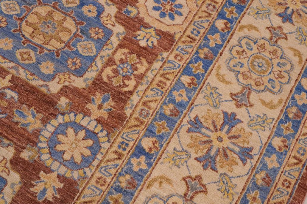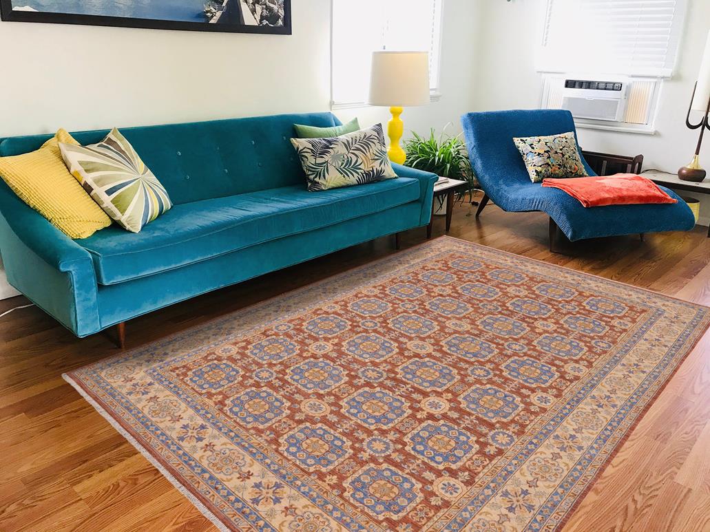 A Persian influenced Turkish hand knotted rug made by skilled artisans capable of creating the most exceptional vegetable dyes and hand-spun New Zealand wool. This gorgeous one of a kind handmade rugs is also known as a Chobi Ziegler Rug. This gorgeous rug is extremely versatile and is famous for its pleasing color palette and informal design that works in a myriad of interiors. It has been expertly hand-tied, finished, sun-dried, and can contain up to 1.5 million knots. It takes 4 skilled artisans to hand knot this rug nine to twelve months to complete this piece of art. The invigorating colors and patterns in this rug will give your home an elegant and fresh appearance. While drawing upon the coloring and patterns of antique rugs, contemporary pieces incorporate modern design motifs and feature vibrant color tones. Give your room a luxurious look and feel with this beautiful rug with gorgeous color pallet. The intricate design allows this oriental rug to create a royal ambience in any d̩cor. Hand knotted construction and natural fibers gives this rug soft feel under your feet.