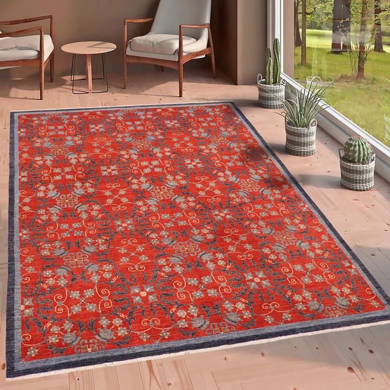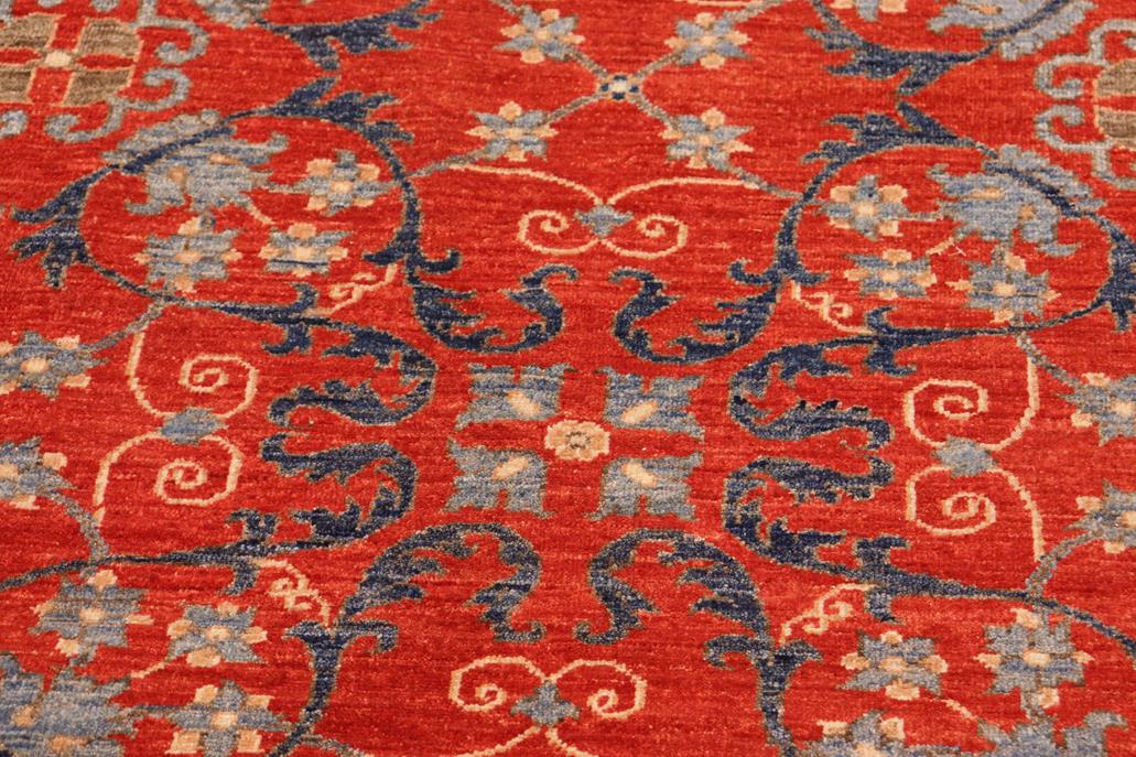 A Persian influenced Turkish hand knotted rug made by skilled artisans capable of creating the most exceptional vegetable dyes and hand-spun New Zealand wool. This gorgeous one of a kind handmade rugs is also known as a Chobi Ziegler Rug. This gorgeous rug is extremely versatile and is famous for its pleasing color palette and informal design that works in a myriad of interiors. It has been expertly hand-tied, finished, sun-dried, and can contain up to 1.5 million knots. It takes 4 skilled artisans to hand knot this rug nine to twelve months to complete this piece of art. The invigorating colors and patterns in this rug will give your home an elegant and fresh appearance. While drawing upon the coloring and patterns of antique rugs, contemporary pieces incorporate modern design motifs and feature vibrant color tones. Give your room a luxurious look and feel with this beautiful rug with gorgeous color pallet. The intricate design allows this oriental rug to create a royal ambience in any d̩cor. Hand knotted construction and natural fibers gives this rug soft feel under your feet.
