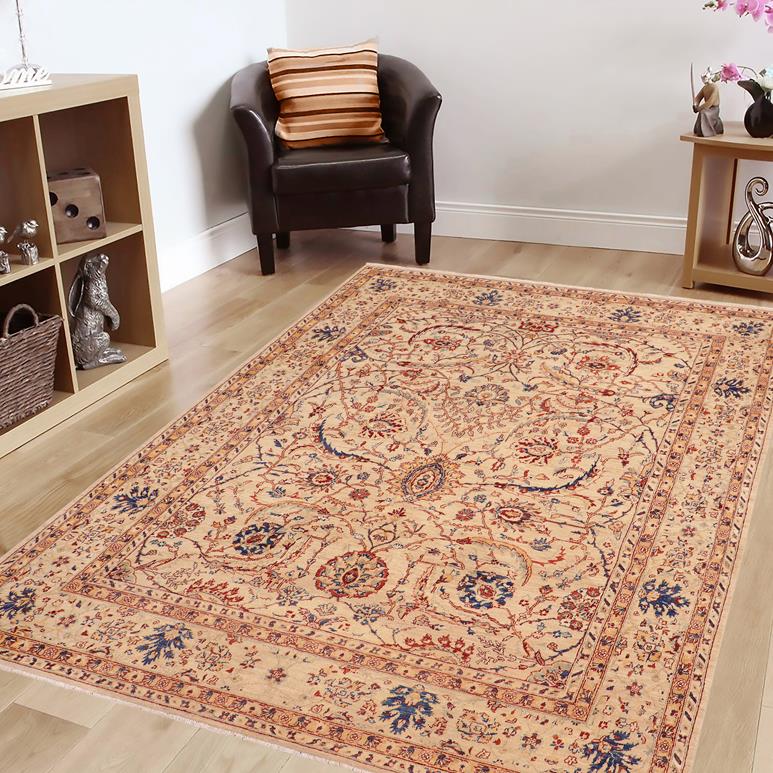 Bohemian Ziegler Rolanda Tan/Blue Wool Rug - 8'0" x 9'10"