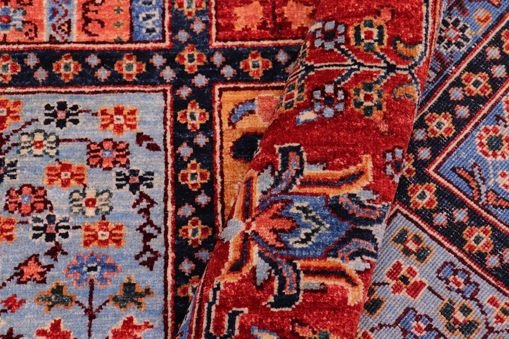 A Persian influenced Turkish hand knotted rug made by skilled artisans capable of creating the most exceptional vegetable dyes and hand-spun New Zealand wool. This gorgeous one of a kind handmade rugs is also known as a Chobi Ziegler Rug. This gorgeous rug is extremely versatile and is famous for its pleasing color palette and informal design that works in a myriad of interiors. It has been expertly hand-tied, finished, sun-dried, and can contain up to 1.5 million knots. It takes 4 skilled artisans to hand knot this rug nine to twelve months to complete this piece of art. The invigorating colors and patterns in this rug will give your home an elegant and fresh appearance. While drawing upon the coloring and patterns of antique rugs, contemporary pieces incorporate modern design motifs and feature vibrant color tones. Give your room a luxurious look and feel with this beautiful rug with gorgeous color pallet. The intricate design allows this oriental rug to create a royal ambience in any d̩cor. Hand knotted construction and natural fibers gives this rug soft feel under your feet.