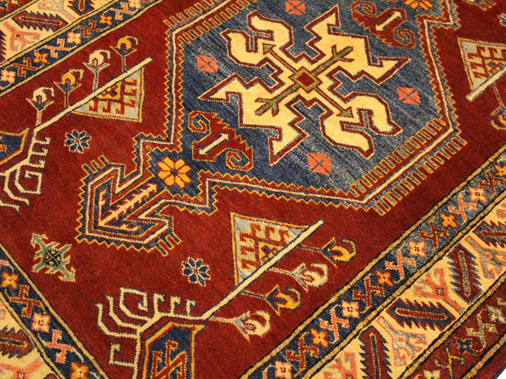 Tribal Super Kazak Lorine Rust/Tan Wool Rug - 4'0'' x 5'5''