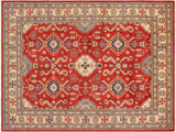 Southwestern Kazak Moha Red/Beige Wool Rug - 8'0'' x 9'8''