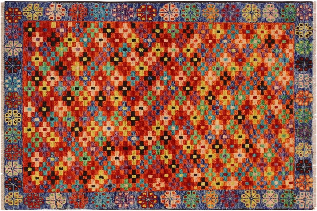 Modern Balochi Franches Hand Knotted Wool Rug - 3'4'' x 4'11''
