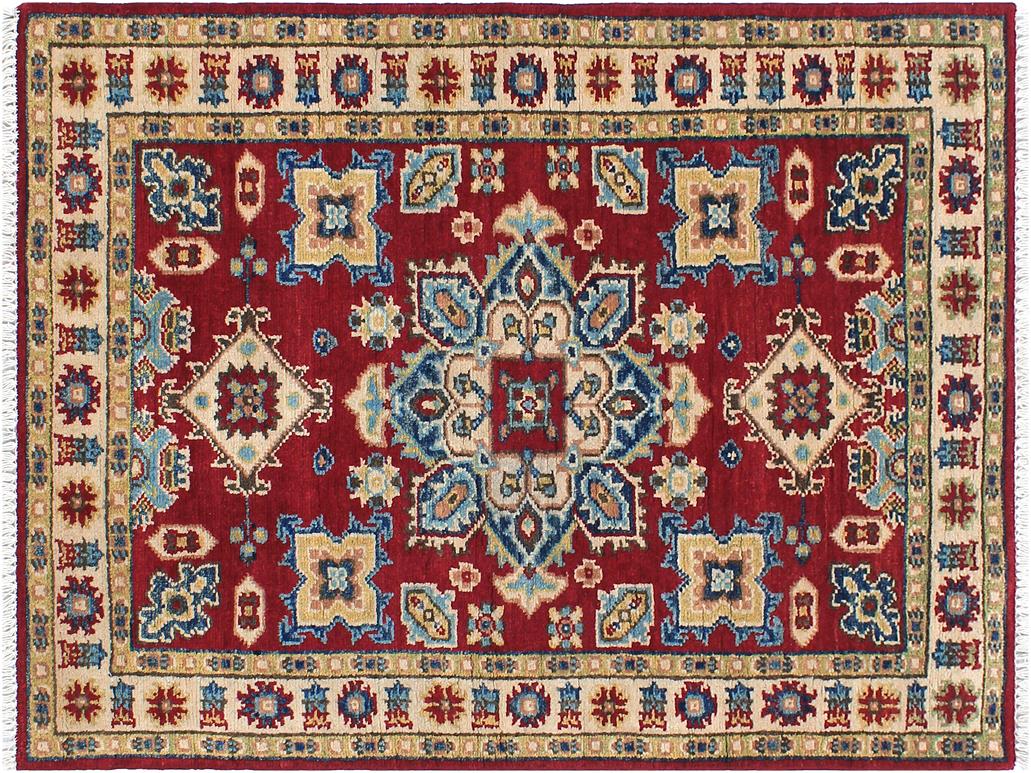 Tribal Kazak Jerlene Red/Beige Wool Rug - 2'9'' x 4'2''