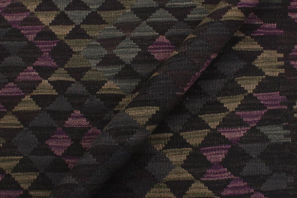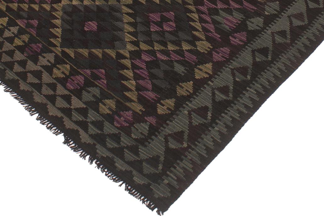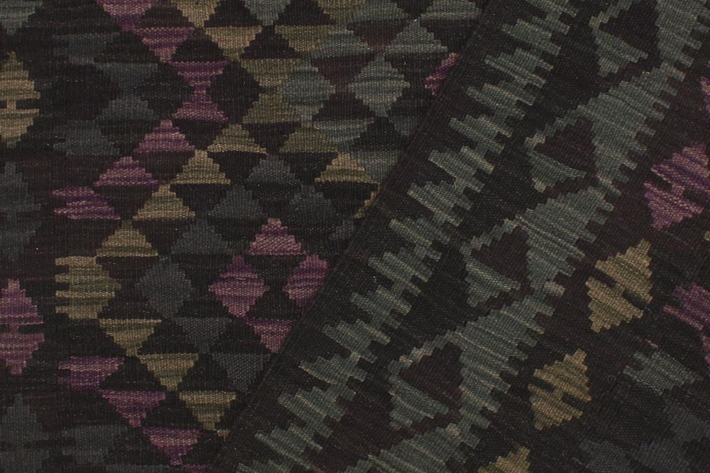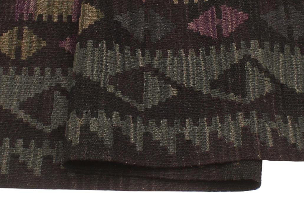 Elevate the elegance of your home with this stunning hand-woven tribal Kilim wool rug. Meticulously crafted on a loom by the Nomad Turkman people using hand-spun wool and 100% natural vegetable dyes, these rugs are recognized for their repetitive geometric patterns, incorporating naturalistic floral and traditional designs. The contemporary fashion palette results in bold, sharp patterns that are incredibly versatile, as the pattern is the same on both sides. These reversible rugs feature a lighter shade on one side and brighter colors on the other, providing versatility according to preference. These unique rugs are made by knotting short strands of different colors onto the warps and securing them by tightly pressing the wefts. The designs are created by interweaving the various colored wefts and warps. Kilims are known for their exceptional durability and versatility, making them truly unique rugs.