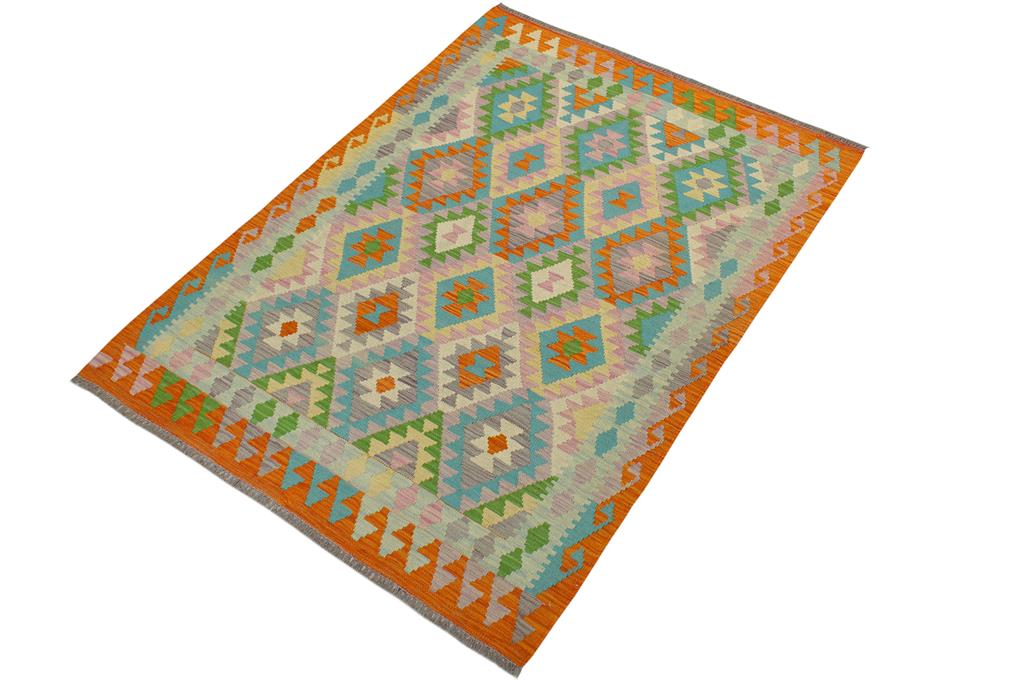 Rustic Turkish Kilim Murphy Hand-Woven Wool Rug - 4'3'' x 5'9''