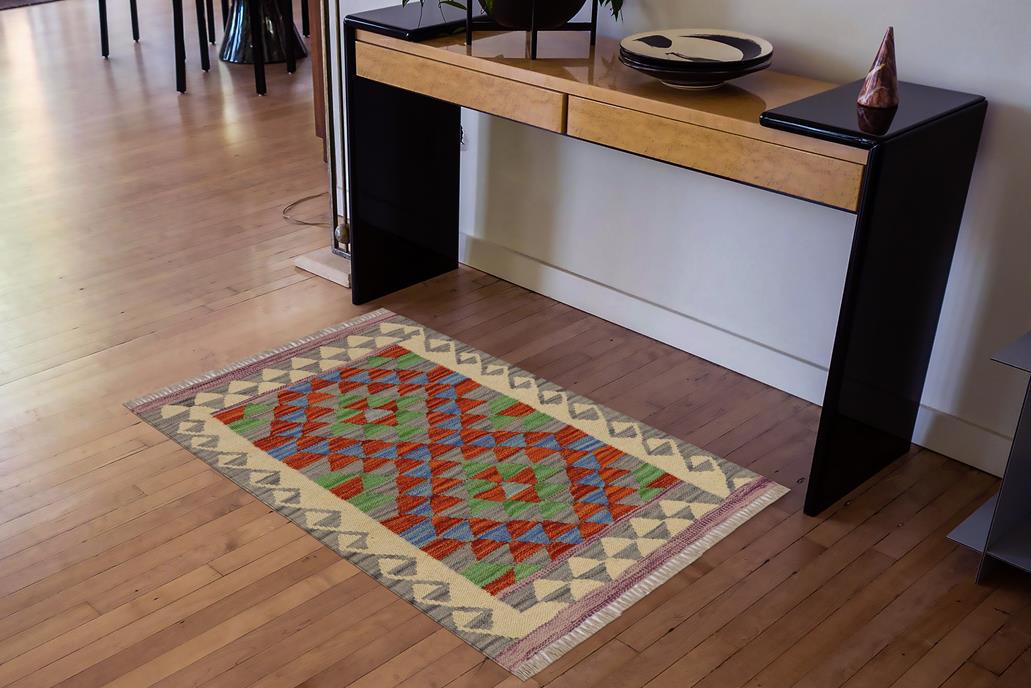 Southwestern Turkish Kilim Aaliyah Hand-Woven Wool Rug - 2'0'' x 2'8''