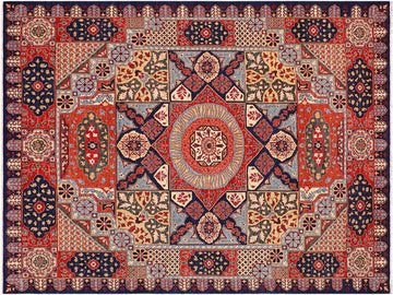 Rustic Mamluk Antoniet Blue/Red Wool Rug - 9'4'' x 12'3''
