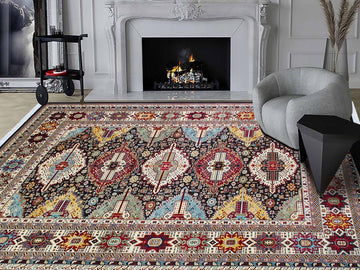 Add a splash of color to your decor with this stylish and exotic breathtaking tribal area rug. An ornamental bohemian rug with an intricate pattern and a vibrant color pallet of Blue, Fuchsia, Gray, Ivory and Gold is a great...