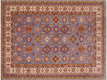 Tribal Super Kazak Zena Blue/Beige Wool Rug - 9'0'' x 12'1''