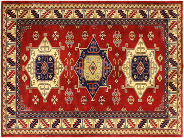 Rustic Super Kazak Hermine Red/Blue Wool Rug - 5'3'' x 6'3''